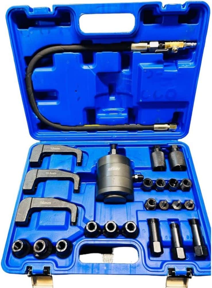 Kit estrattore pneumatico per rimuovere iniettori diesel estrattore ad aria in valigia estrattori e adattatori strumento rimozione + 3 adattatori
