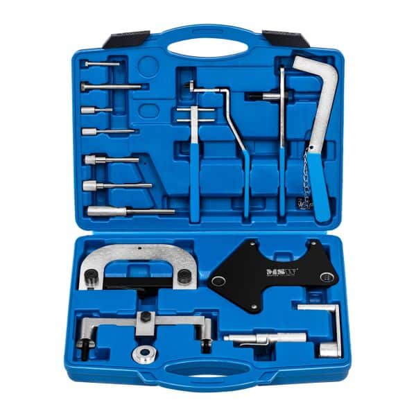 Caratteristiche principaliUniversale – adatto a molti modelli di veicoli Renault.Precisione nel montaggio – gli strumenti si adattano in modo ottimale agli elementi di molti motori Renault.Durevole – acciaio e alluminio robusto e resistente con lunga durata.Protettivo – bassa usura e sicuro da usare.Mobile – pratica valigetta per il trasporto per uno stoccaggio pulito e sicuro.Riporta i motori a regime con l’attrezzatura per la messa in fase del motore per i professionisti!Se vuoi riparare il motore di un’auto Renault, con il kit di fasatura del motore MSW-ETT-12 della MSW, gli esperti di utensili automobilistici di alta qualità, né il bloccaggio del volano, dell’albero motore, dell’albero della pompa o dell’albero della pompa di iniezione, né la rimozione della puleggia dell’albero motore o il tensionamento della cinghia dentata rappresenteranno più un problema.Il dispositivo di arresto delle forniture artigianali della MSWCon lo strumento di regolazione dell’albero a camme è possibile eseguire lavori anche complicati su vari modelli di veicoli con il motore, ad esempio sulla Renault Clio 1.2/1.4, Clio 1.4/1.6/1.8 16v, Clio Sport 2,0 16v, Clio Williams 2,0 16v, Espace 2,0 16v, Espace 2,2 td, Express 1.4, Extra 1,4 o Kangoo 1.2/1.4 l. Questo strumento professionale è stato progettato per adattarsi perfettamente ai corrispondenti elementi del motore ed è quindi facile da usare. Lo strumento di regolazione del motore garantisce il metodo più efficiente per il fissaggio e la regolazione del motore. Lavorare con altri strumenti disponibili in commercio può danneggiare le parti del motore e ferire l’utente stesso. Inoltre, lavorare con il set di utensili di MSW è molto poco usurante.Gli utensili in acciaio resistente e durevole ti garantiranno un servizio fedele per molti anni e non dovrebbero quindi mancare in nessuna officina professionale o nel garage di un ambiziosi avvitatori dilettanti! E se si va dai clienti con l’attrezzo di regolazione del motore o se non viene utilizzato, è sufficiente riporre tutti gli utensili in modo pulito e sicuro nella valigetta di trasporto in plastica robusta. Così avete sempre ordine in officina e tutto a portata di mano non appena gli strumenti sono necessari.