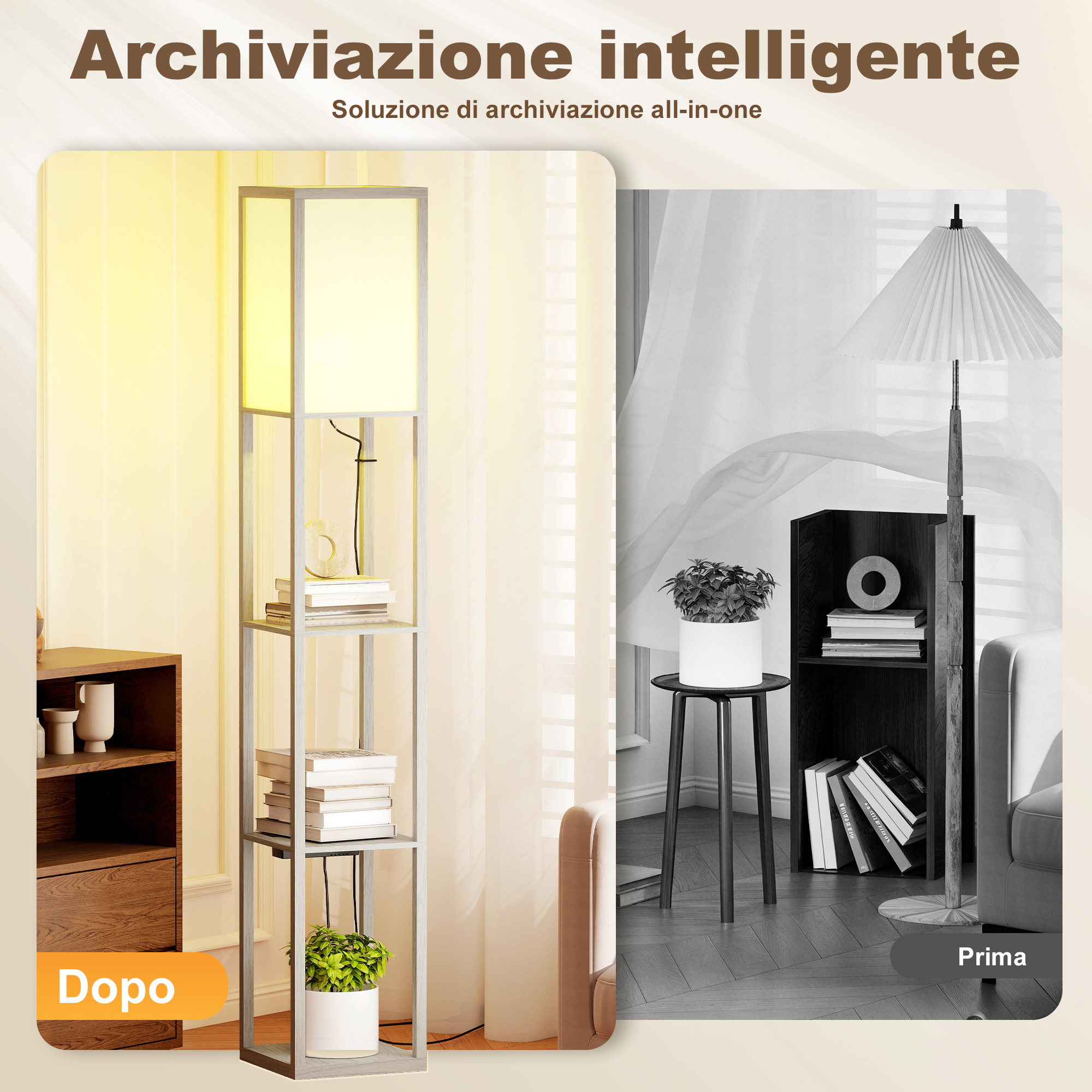 • • Lampada da terra 2-in-1 con illuminazione e scaffali per risparmiare spazio in qualsiasi stanza