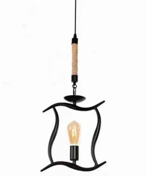 Lampadario a sospensione in ferro battuto con corda di canapa ms13