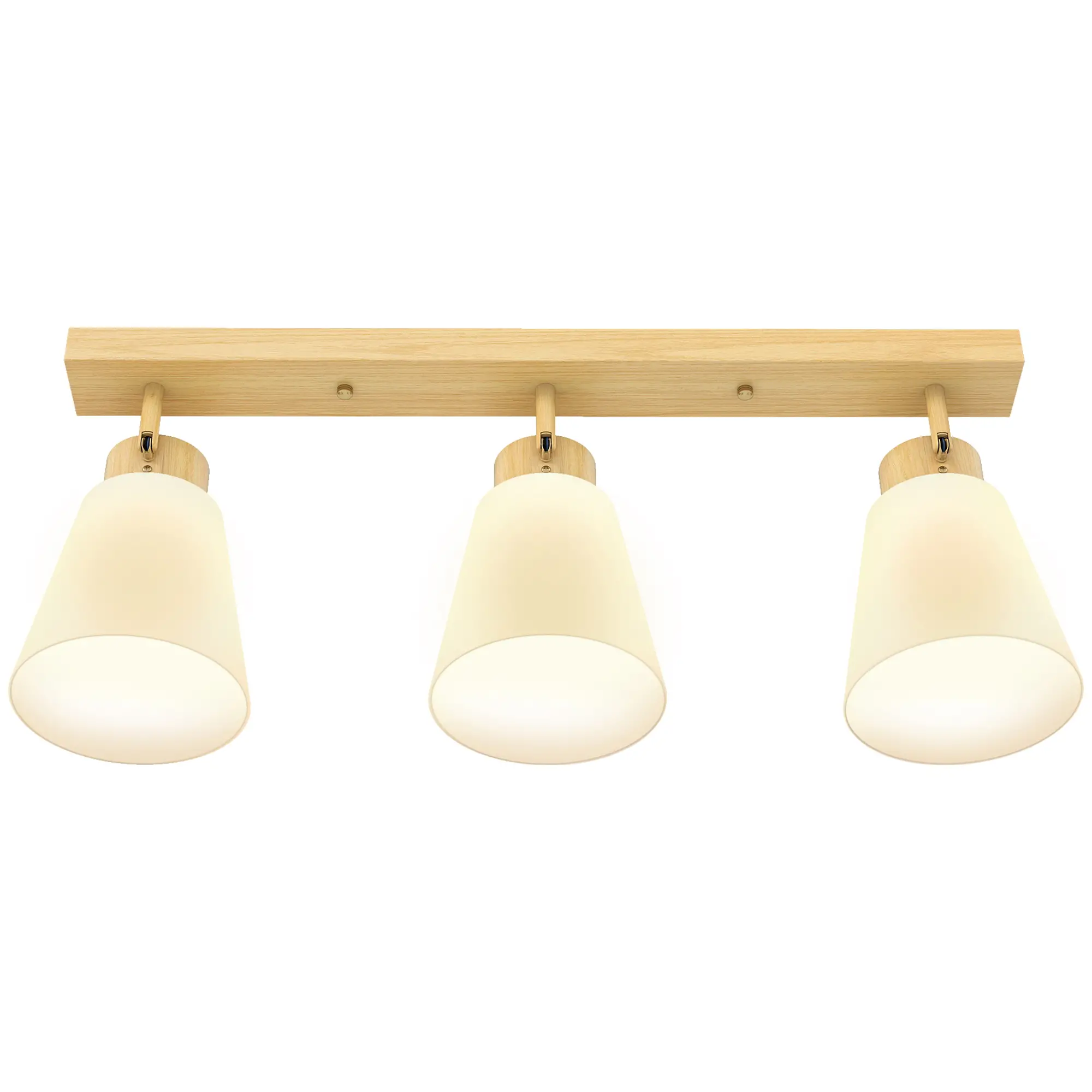 Lampadario da Soffitto con 3 Punti Luce Regolabili a 90° e Attacchi E27, Colore Legno
