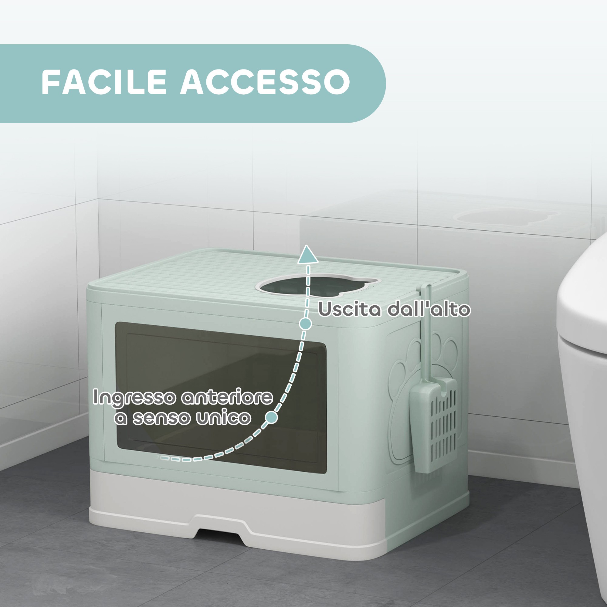 Lettiera per Gatti Chiusa con Coperchio e Doppia Entrata, Cassetto Estraibile, Paletta e Spazzola, Verde