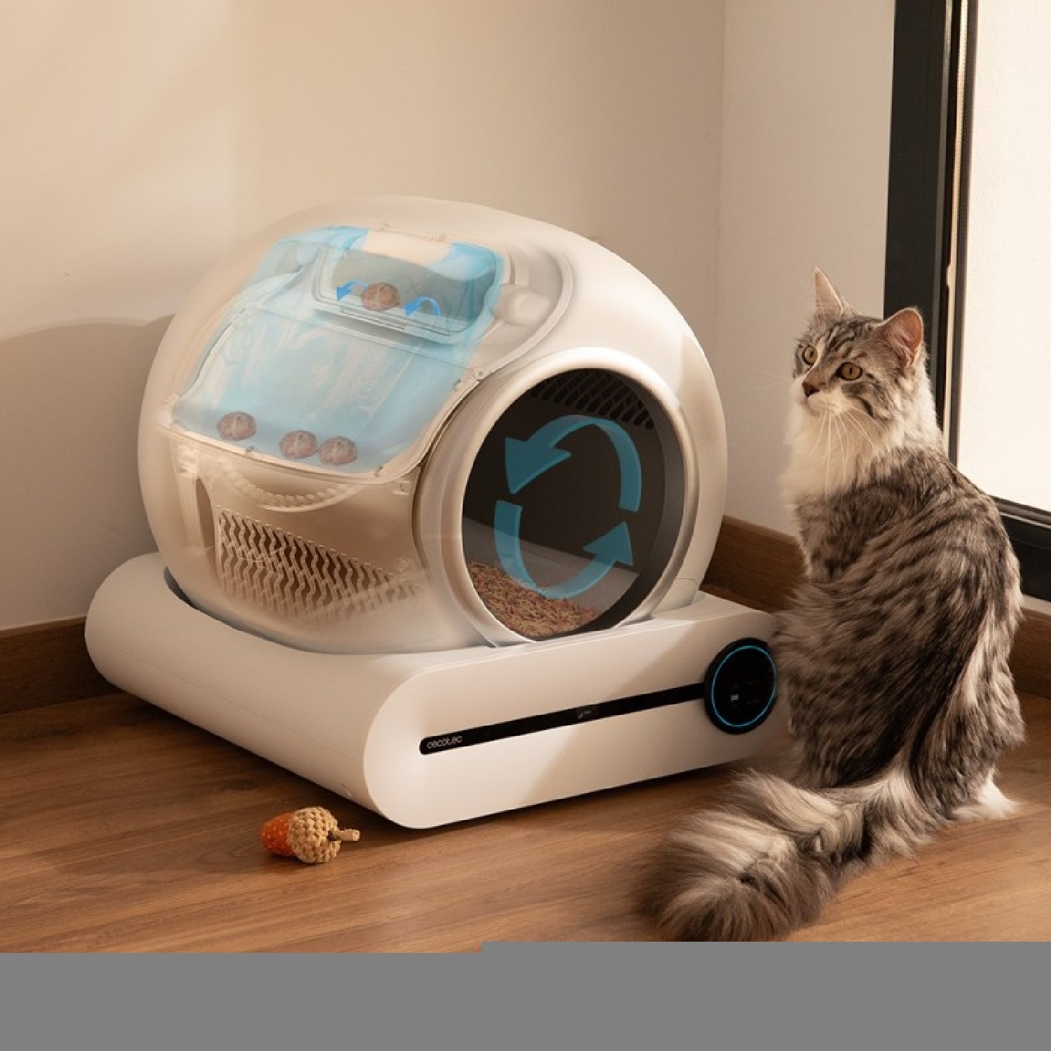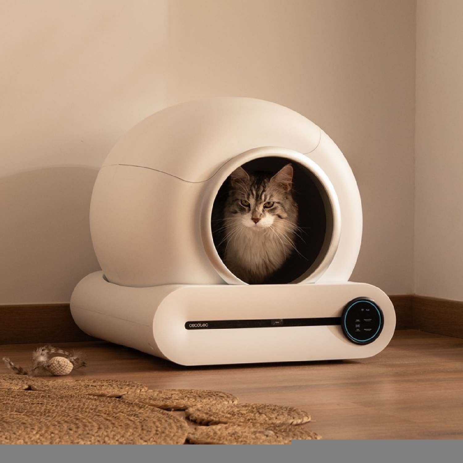 Lettiera autopulente e silenziosa con triplo sistema di deodorizzazione, controllo Wi-Fi e sensore a infrarossi per una maggiore sicurezza.