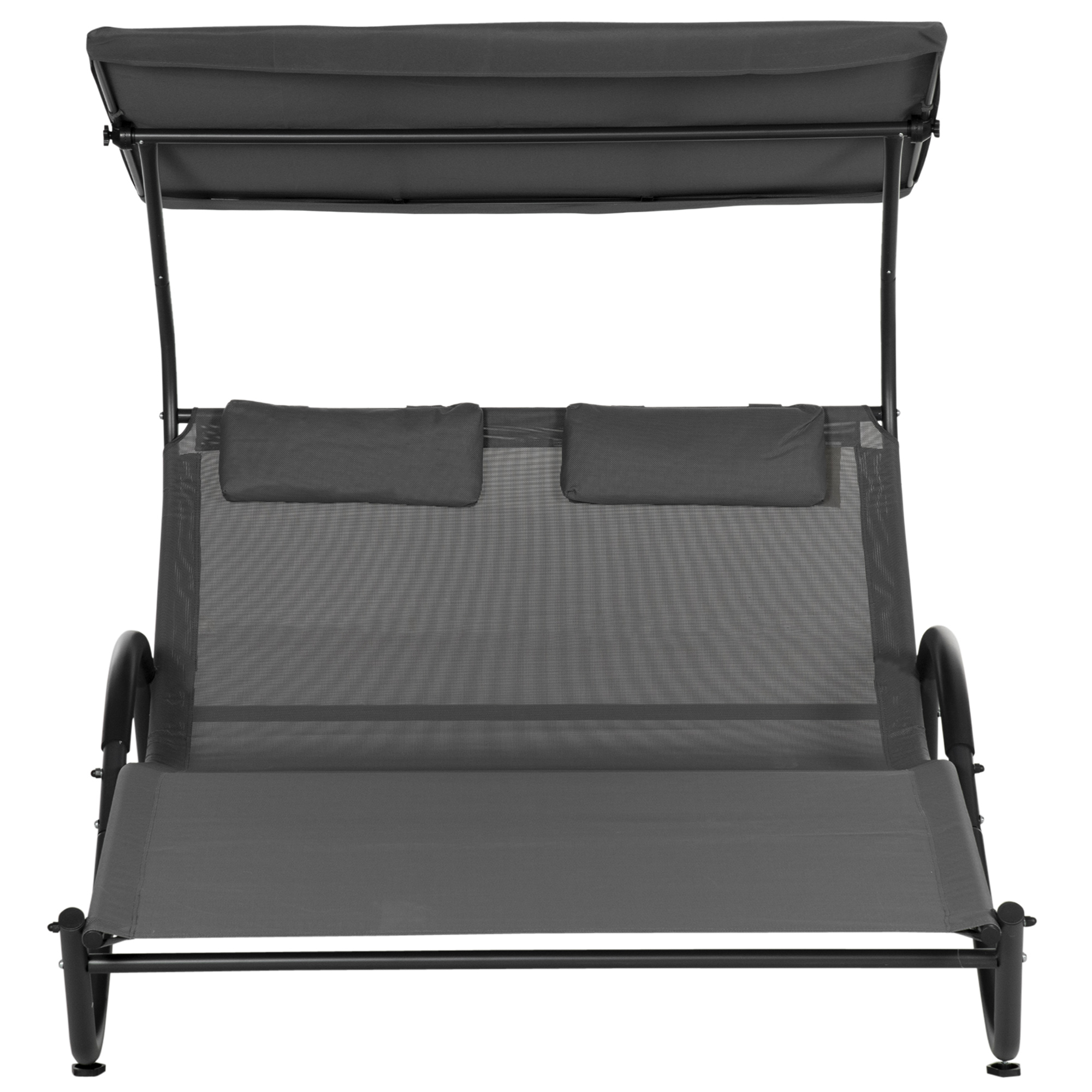 Lettino Prendisole Reclinabile a 2 Posti con Ruote, Poggiatesta Imbottito e Tetto, 200x137x138 cm, Grigio