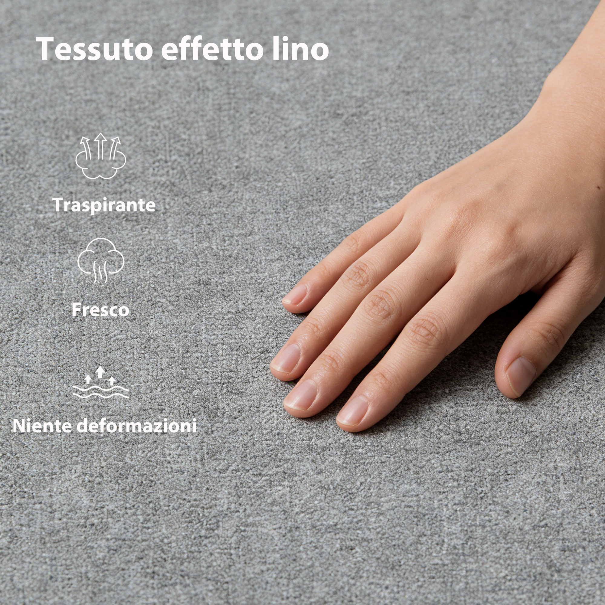 • • Il rivestimento effetto lino aggiunge calore, stile e un tocco moderno e accogliente alla camera da letto