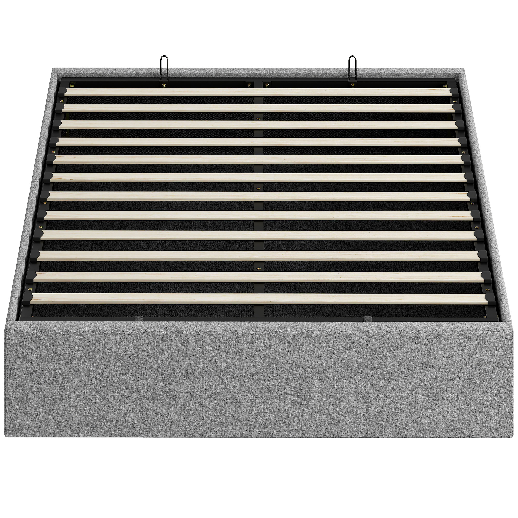 Letto Contenitore Matrimoniale 190×140 cm, Doghe in Legno, Pistone a Gas e Rivestimento in Tessuto, Grigio
