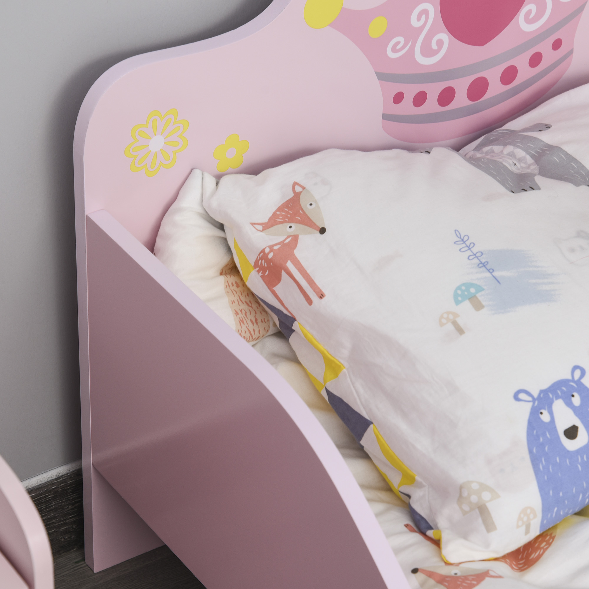 Letto per Bambini 3-6 Anni in Legno con Bordi Rialzati, 143x73x60 cm, Rosa