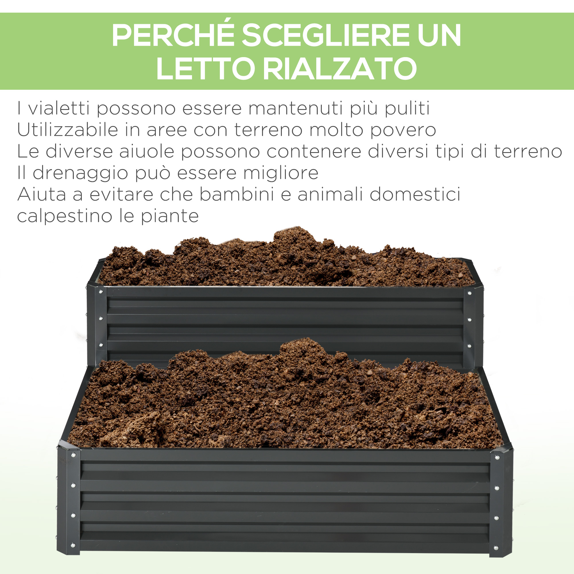 Letto per Orto Rialzato a 2 Livelli in Acciaio con Fondo Aperto, 120x101x58cm, Grigio Scuro