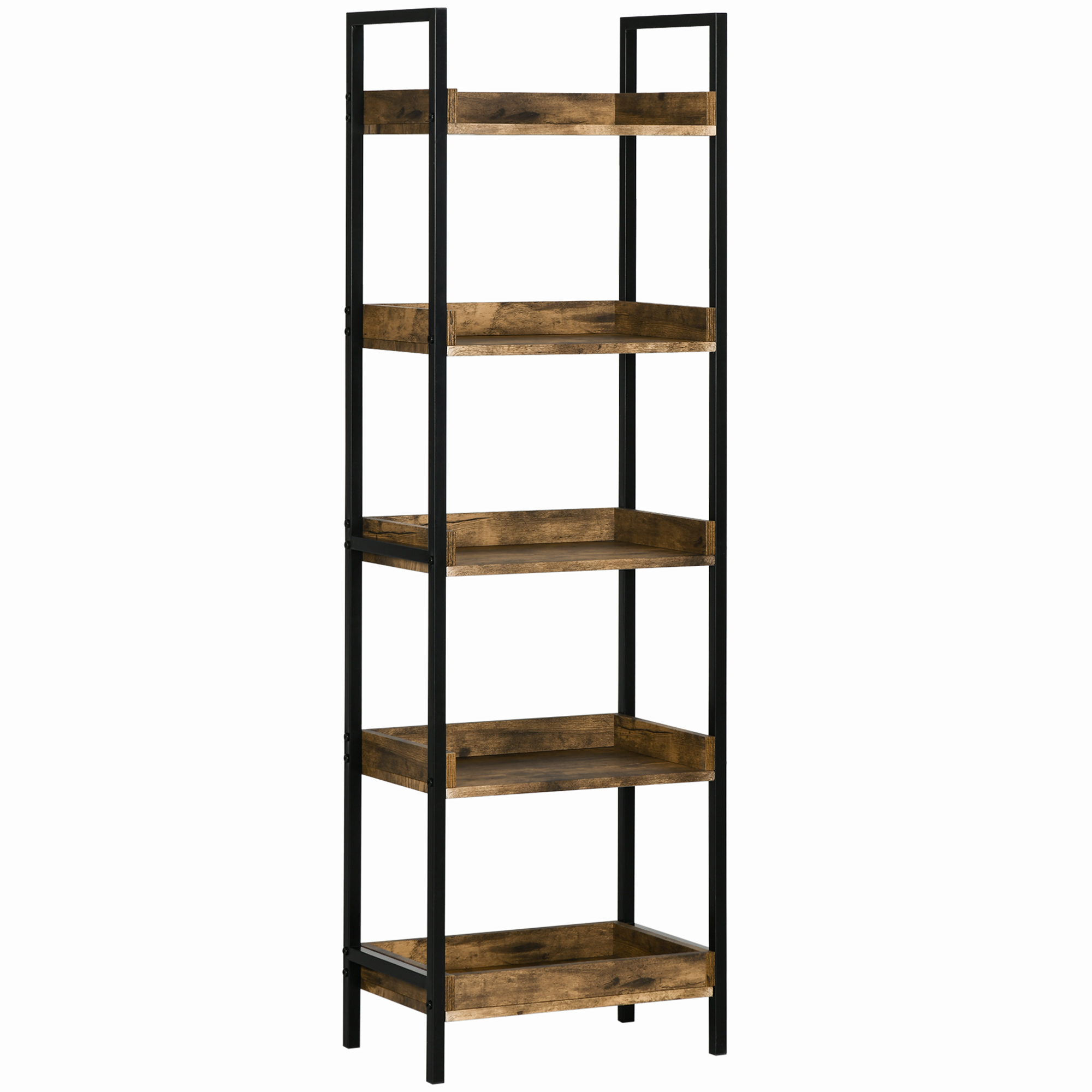 Libreria Stile Industriale a 5 Ripiani in Legno e Metallo, 48x30x155cm, Marrone Rustico