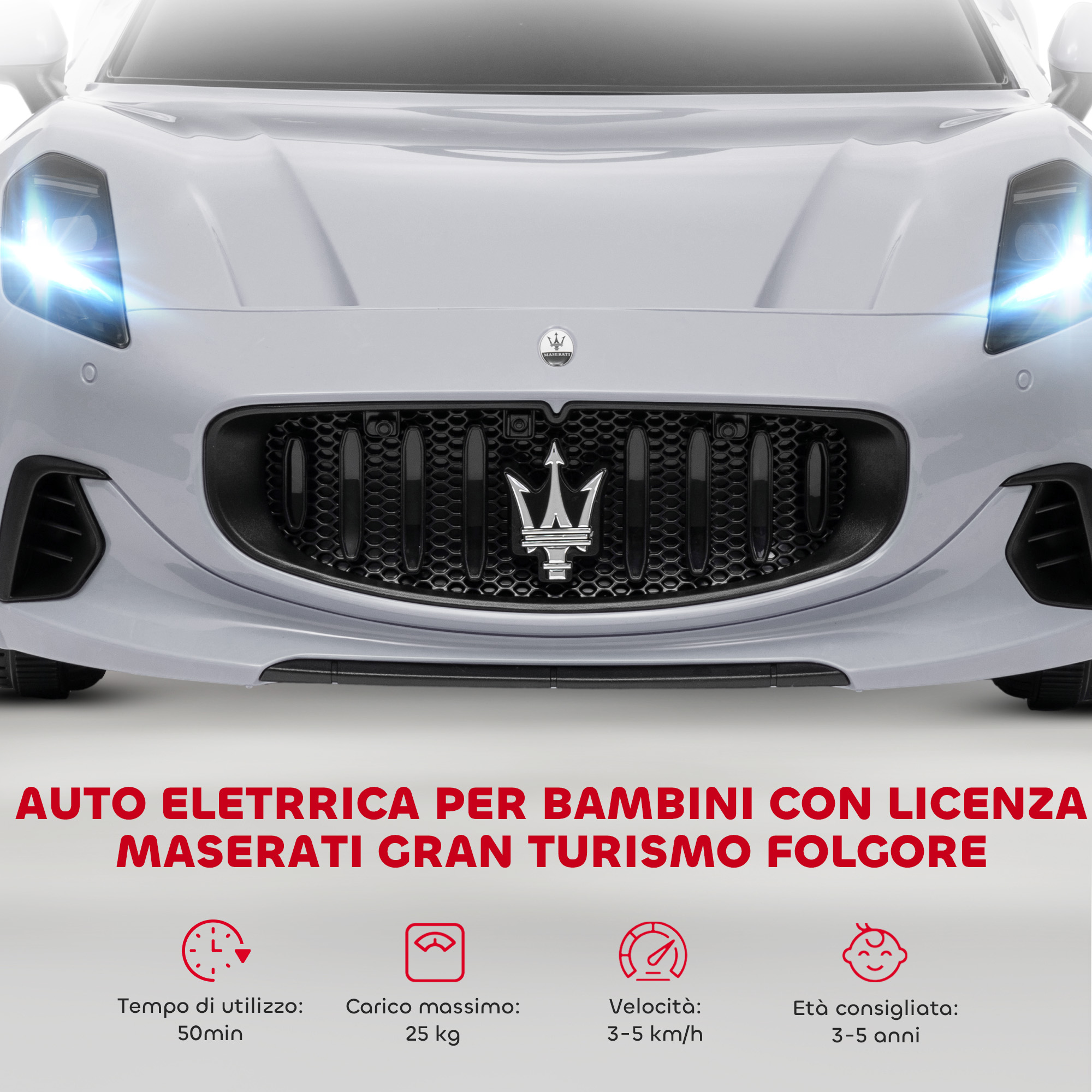 Macchina per Bambini 12V Maserati Gran Turismo Folgore con Telecomando, Età 3-5 Anni, Grigio