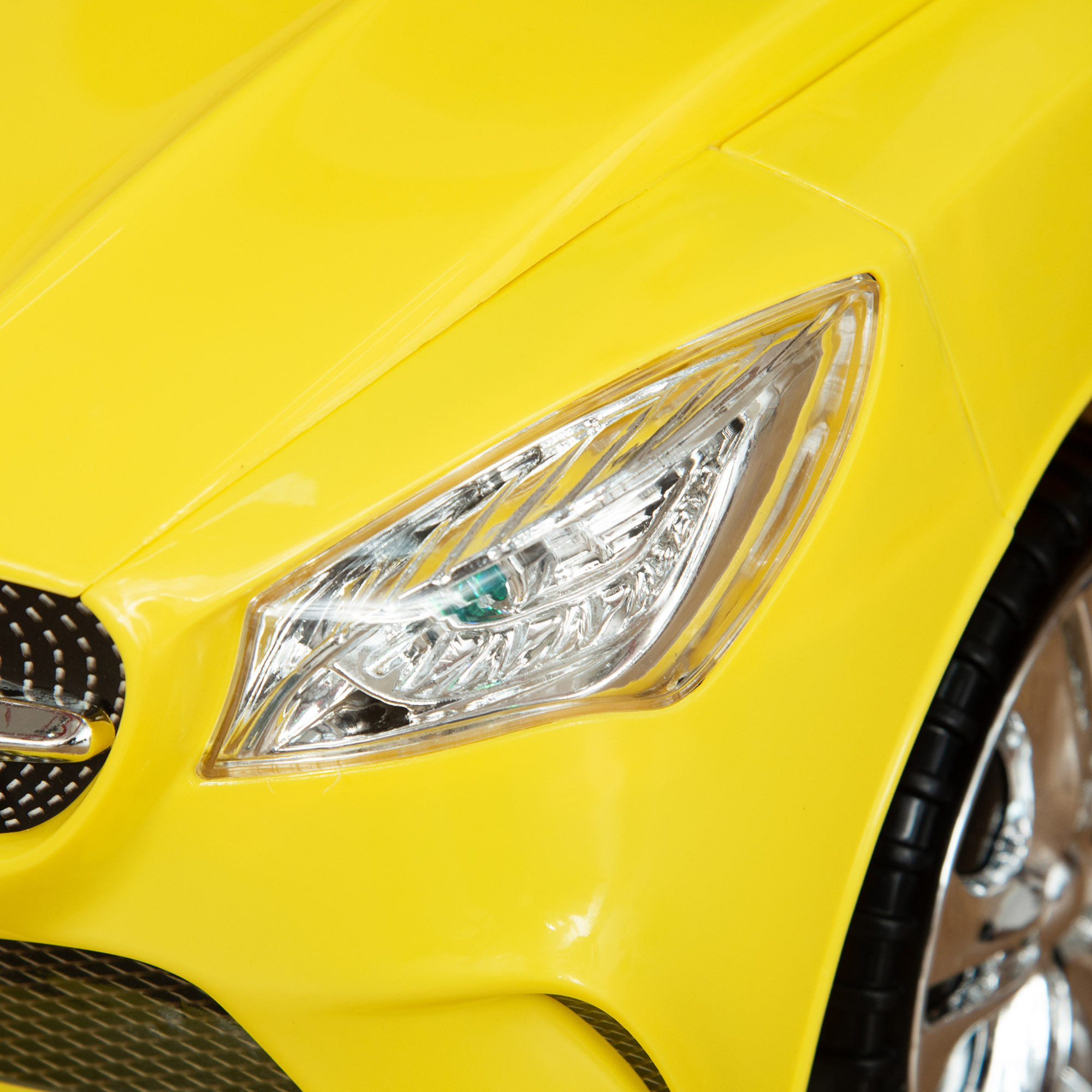 Macchinina per Bambini Cavalcabile con Volante, Fari e Musiche Integrate, Macchina per Bambini in PP e Metallo, 63,5x28x36 cm, Giallo