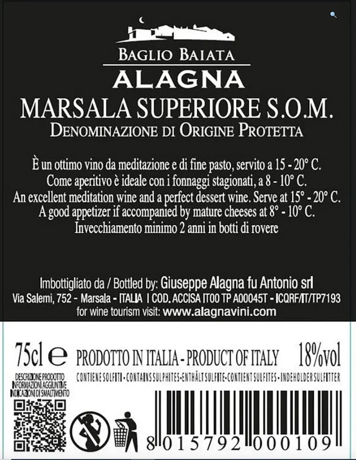 Il Marsala Superiore Secco S.O.M. DOP di Alagna Vini è un vino liquoroso che unisce tradizione, struttura e raffinatezza, prodotto da uve Grillo, Catarratto e Inzolia coltivate nella Sicilia Occidentale.