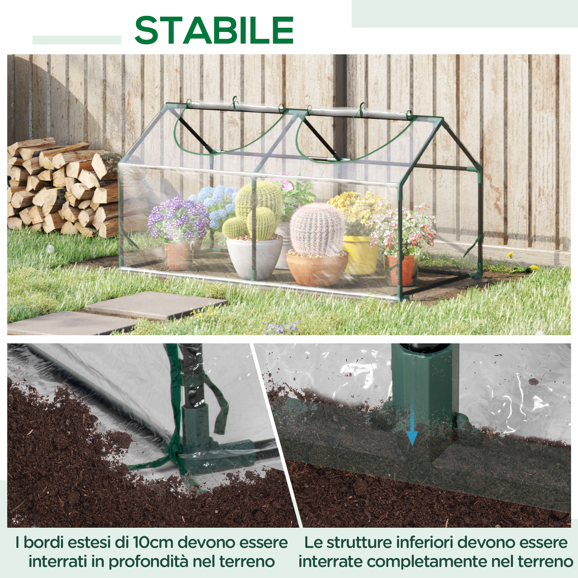 - • La copertura in PVC conserva il calore per le piante e le protegge da vento leggero, pioggia leggera, parassiti e uccelli