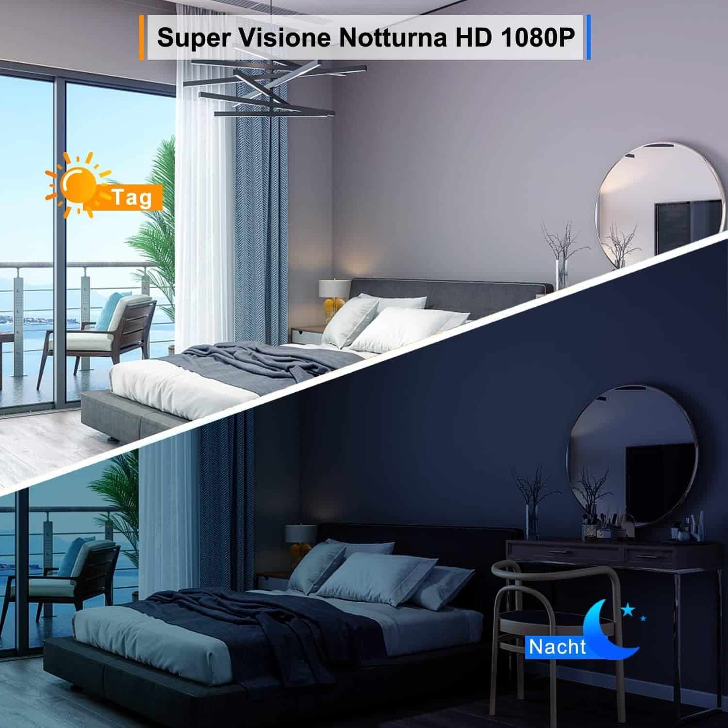 - 🎥 Risoluzione Full HD 1080PLente grandangolare con filtro IR-CUT automatico per adattarsi alla luminosità esterna, offrendo immagini nitide e reali fino a 3 Megapixel di qualità effettiva.