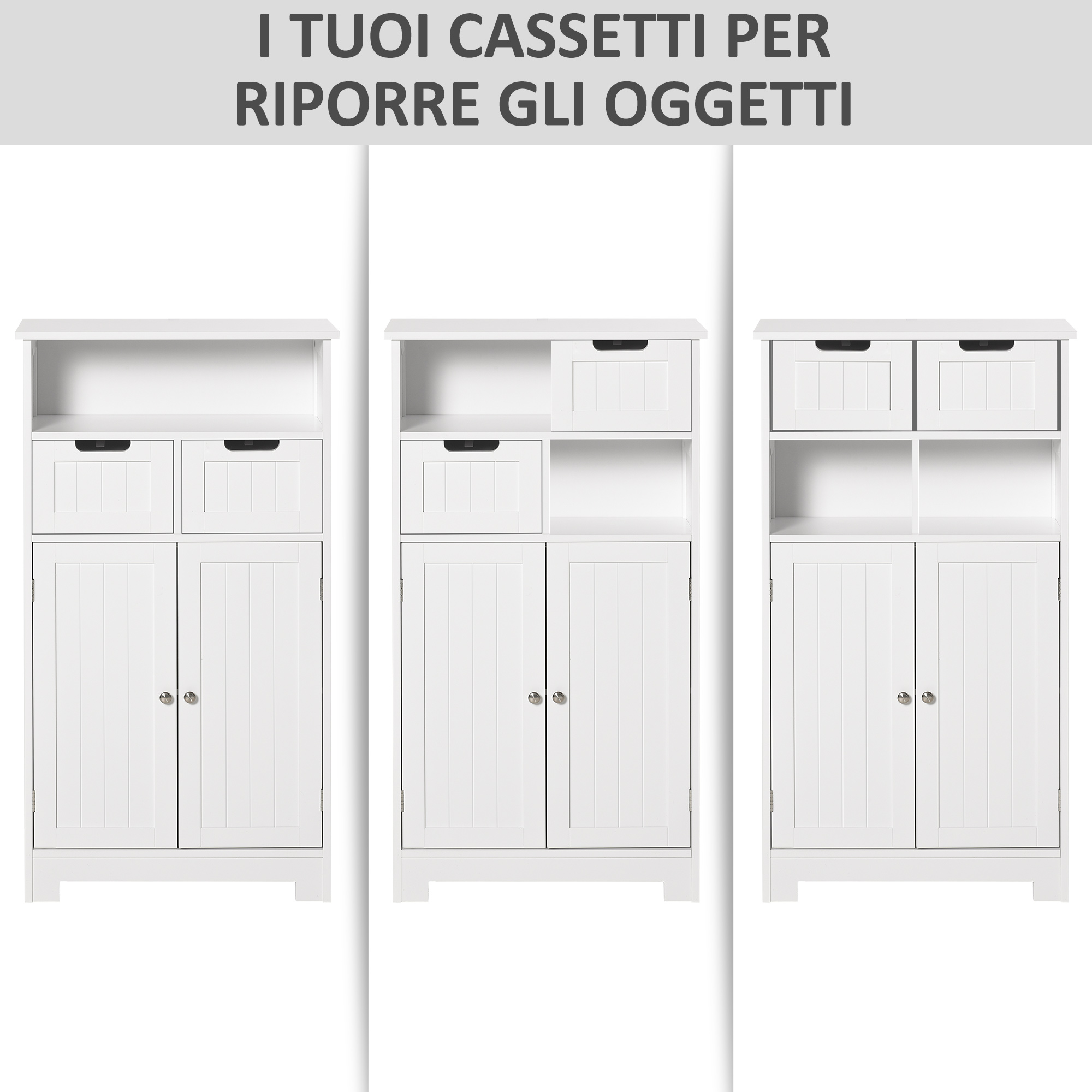 Mobile Bagno Multiuso Salvaspazio, Armadietto da Bagno con Armadietto 2 Ante, Mensola e 2 Cassetti Regolabili, 60x30x108,8cm, Bianco