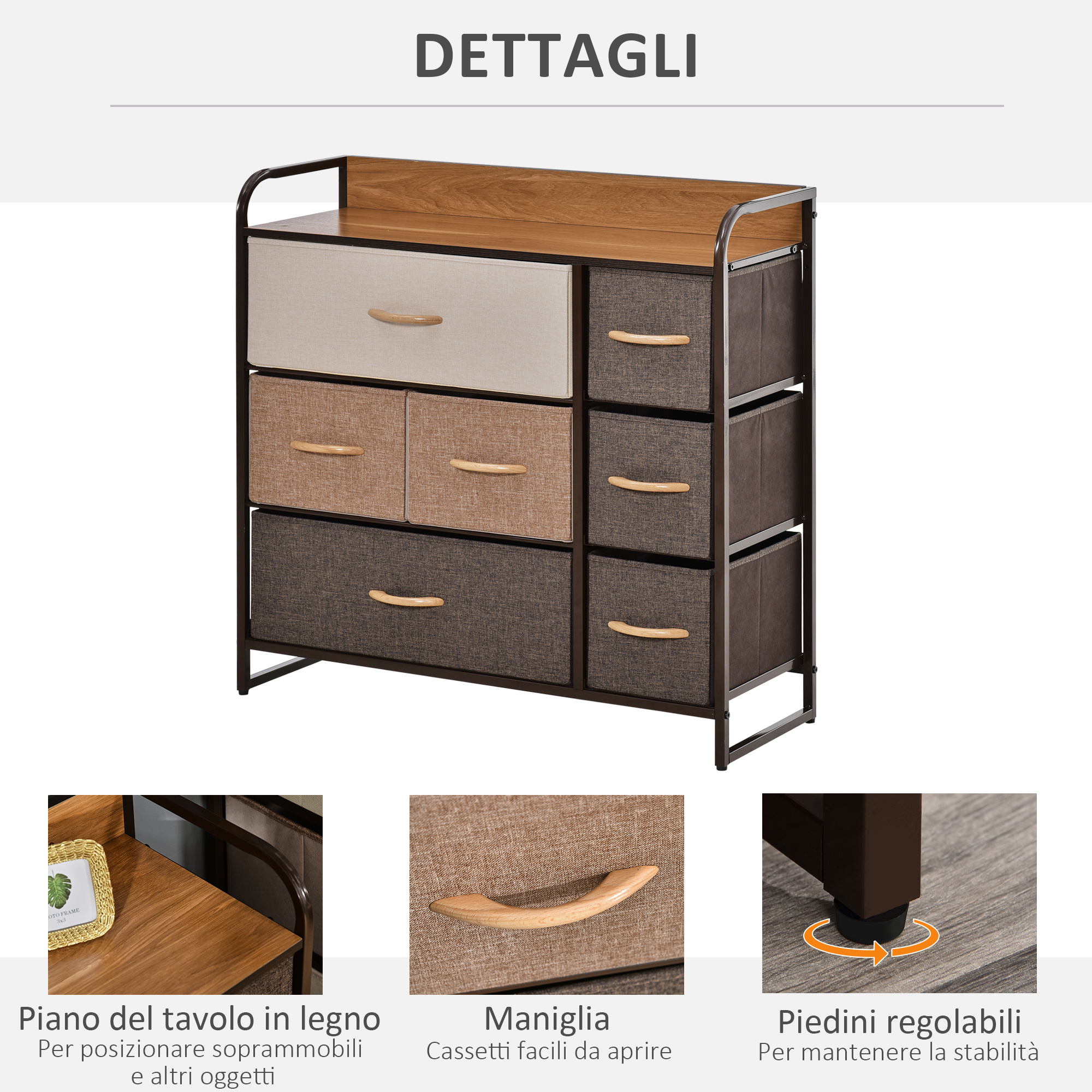 Mobile Cassettiera da Camera da Letto e Soggiorno, Cassettiera con 7 Cassetti Pieghevoli in Tessuto e Ripiano in MDF, 80x29x78,5cm, Multicolore