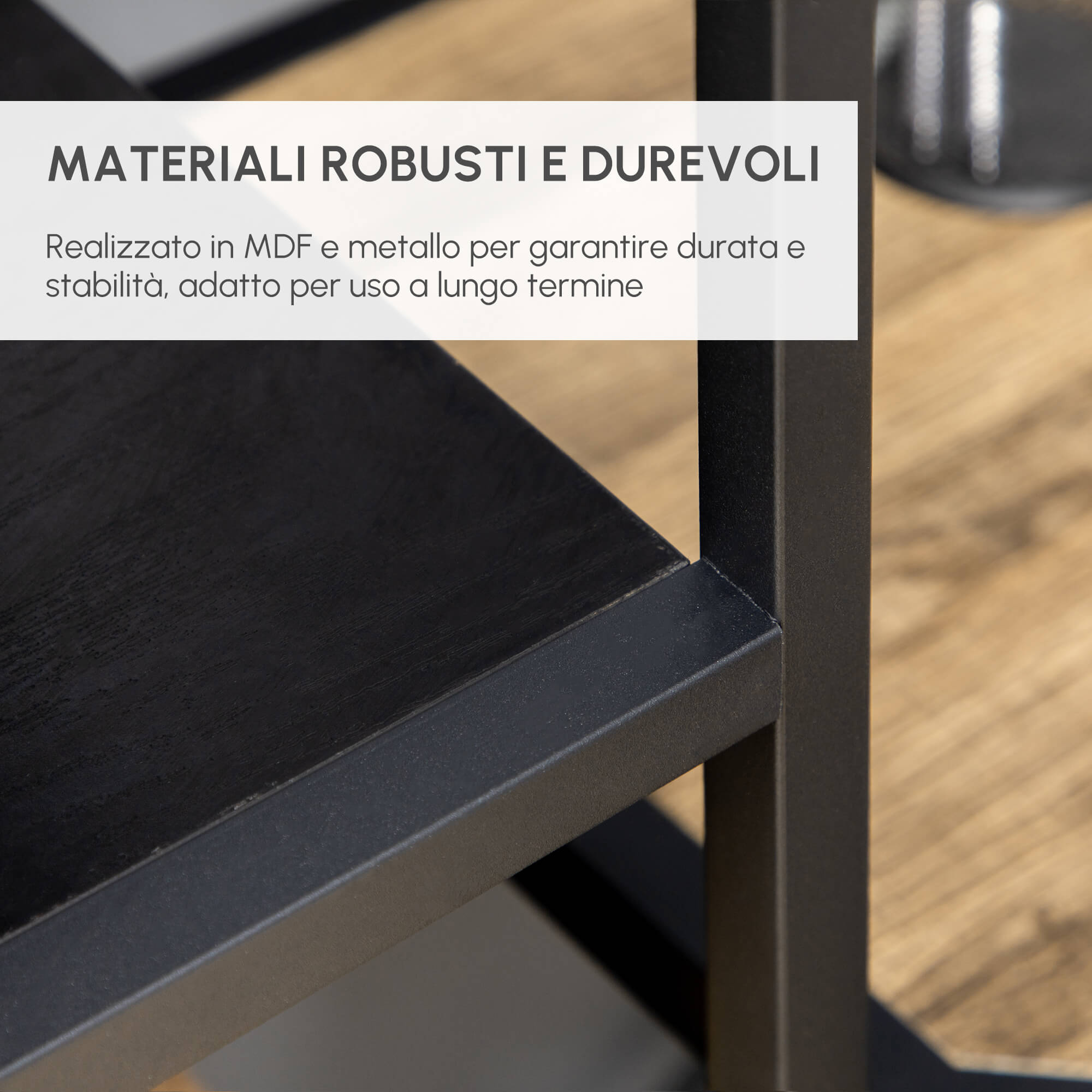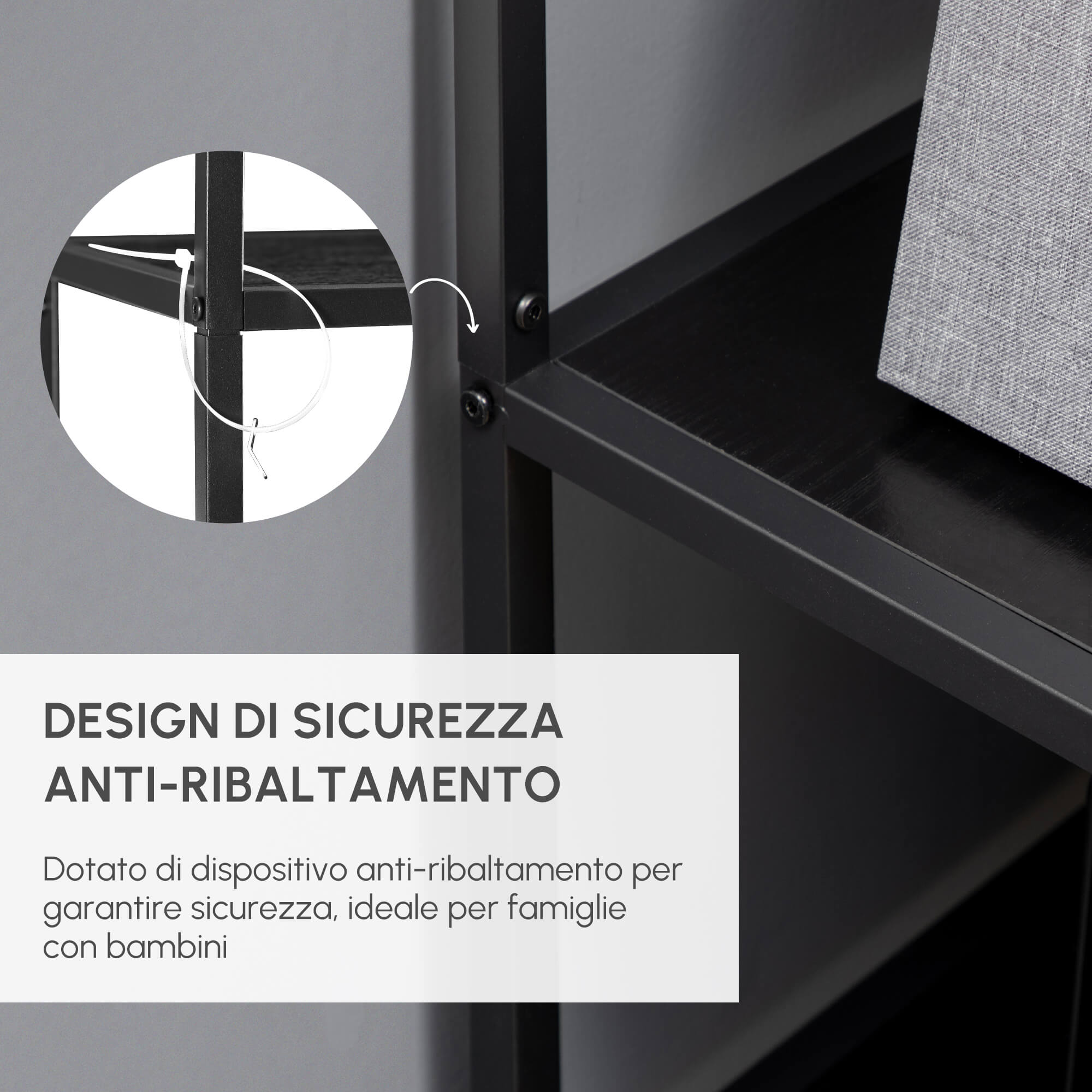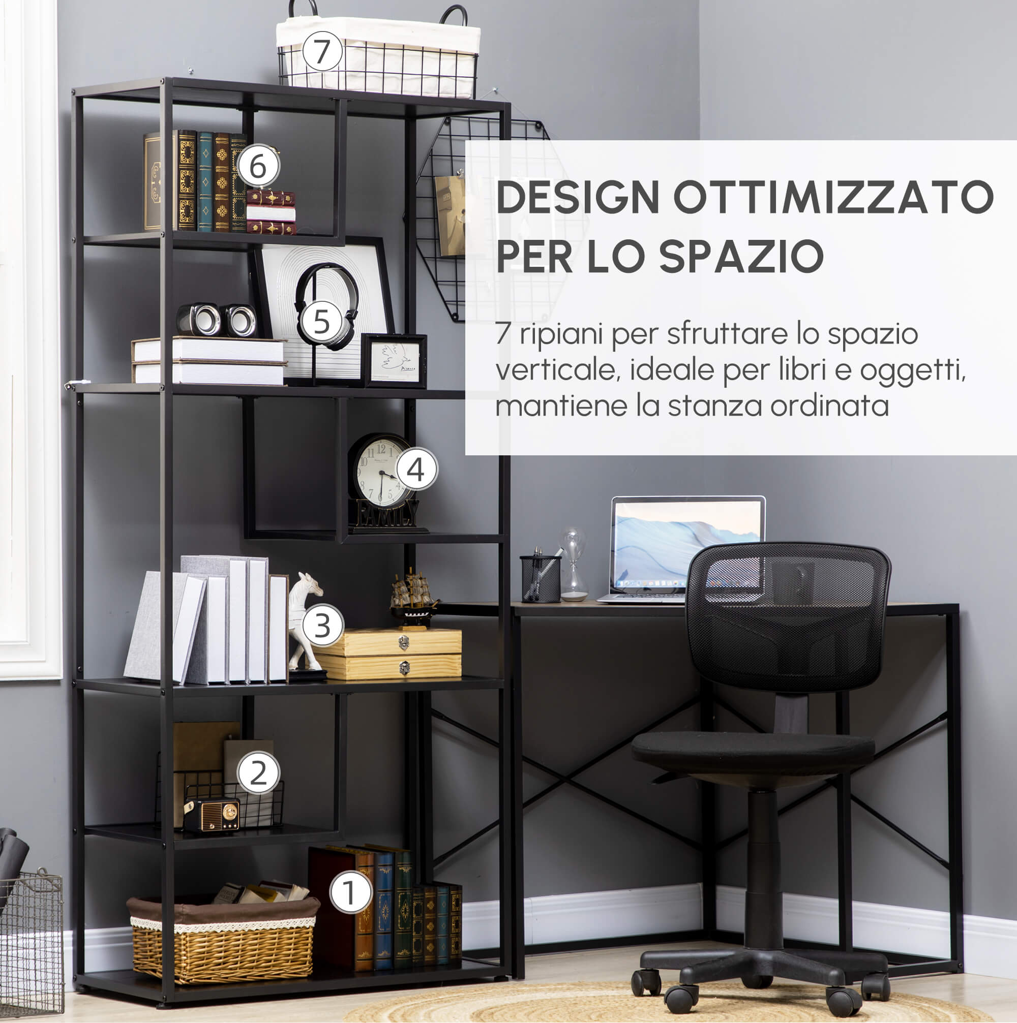 Mobile Libreria a 7 Livelli in Truciolato e Acciaio per Soggiorno, Camera da Letto e Ufficio, 83x34x180 cm, Nero