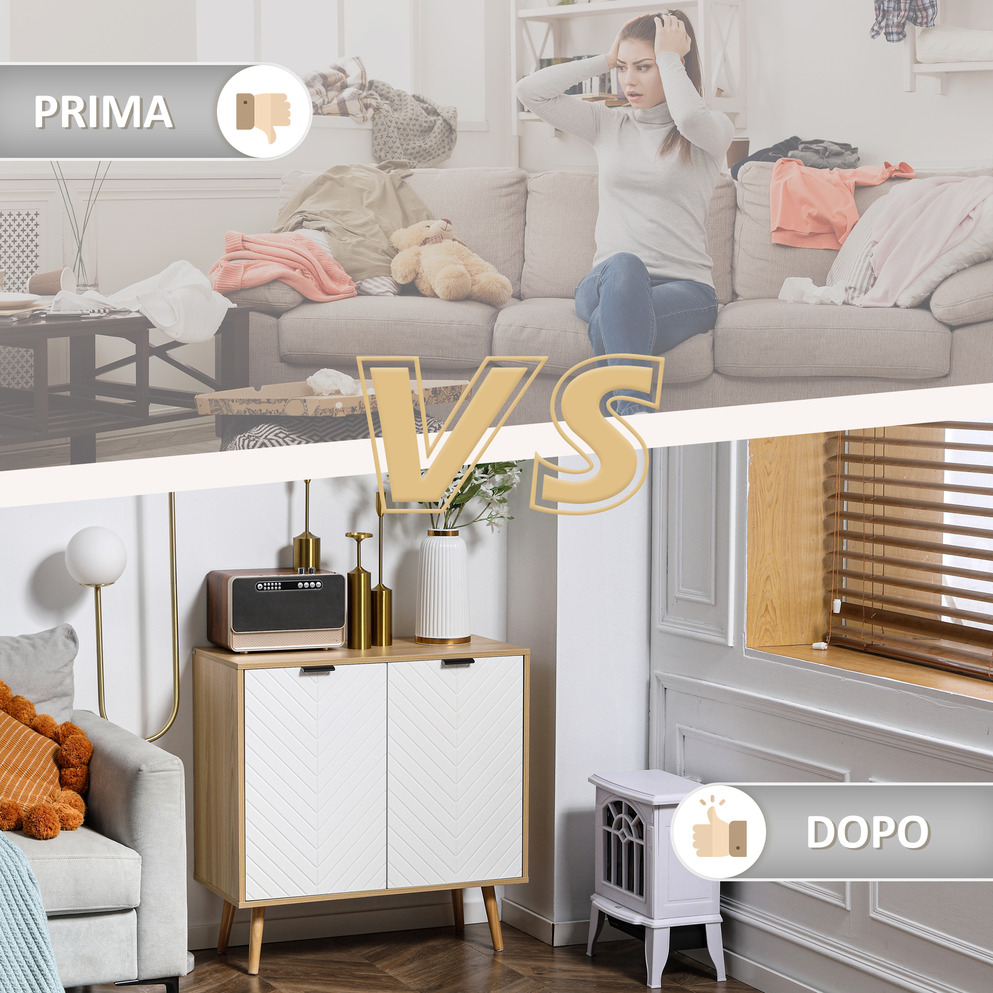• DESIGN MODERNO: Combinando le venature del legno naturale e il colore bianco, questo mobile multiuso con un design particolare delle ante si rivela elegante e raffinato, facile da inserire in qualsiasi arredamento.