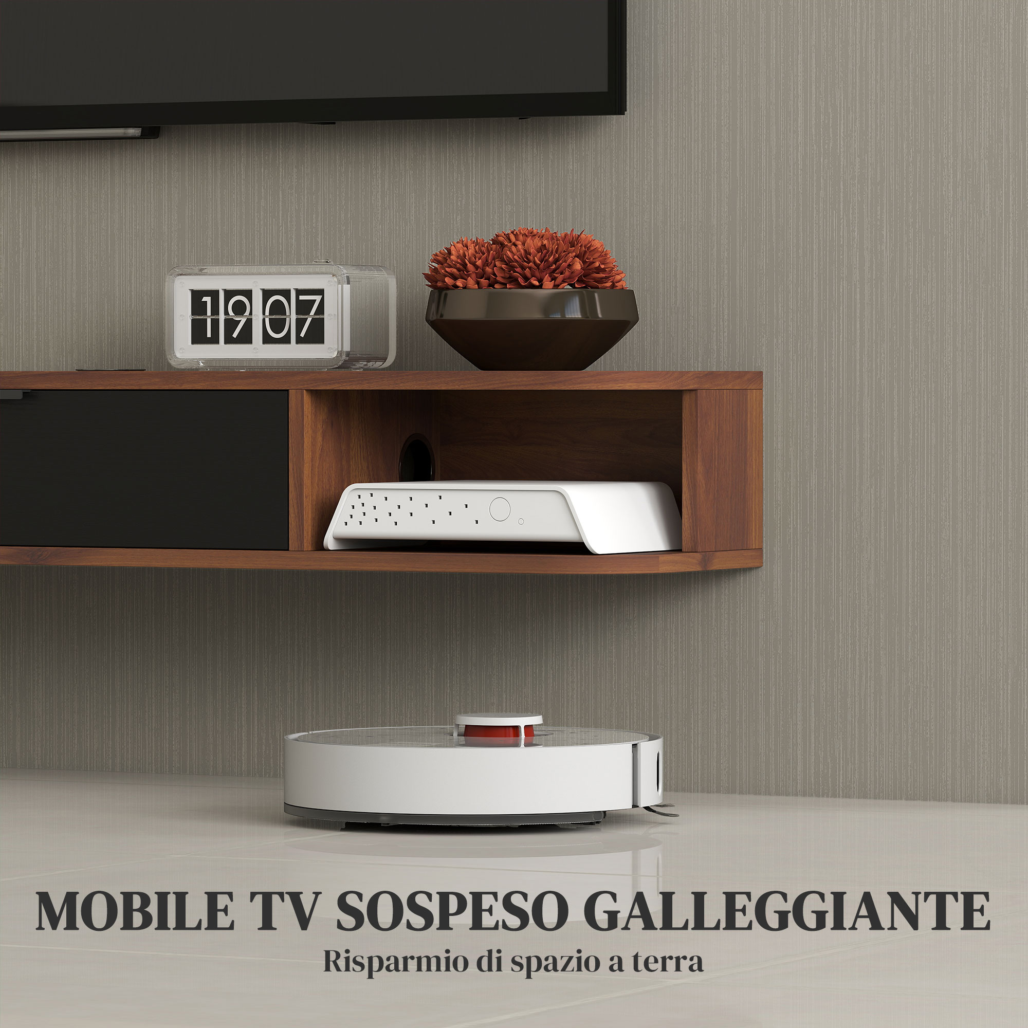 • • Mobile TV sospeso con finitura effetto legno caldo e maniglia nera elegante, che aggiunge un tocco moderno e di stile all’arredo della casa