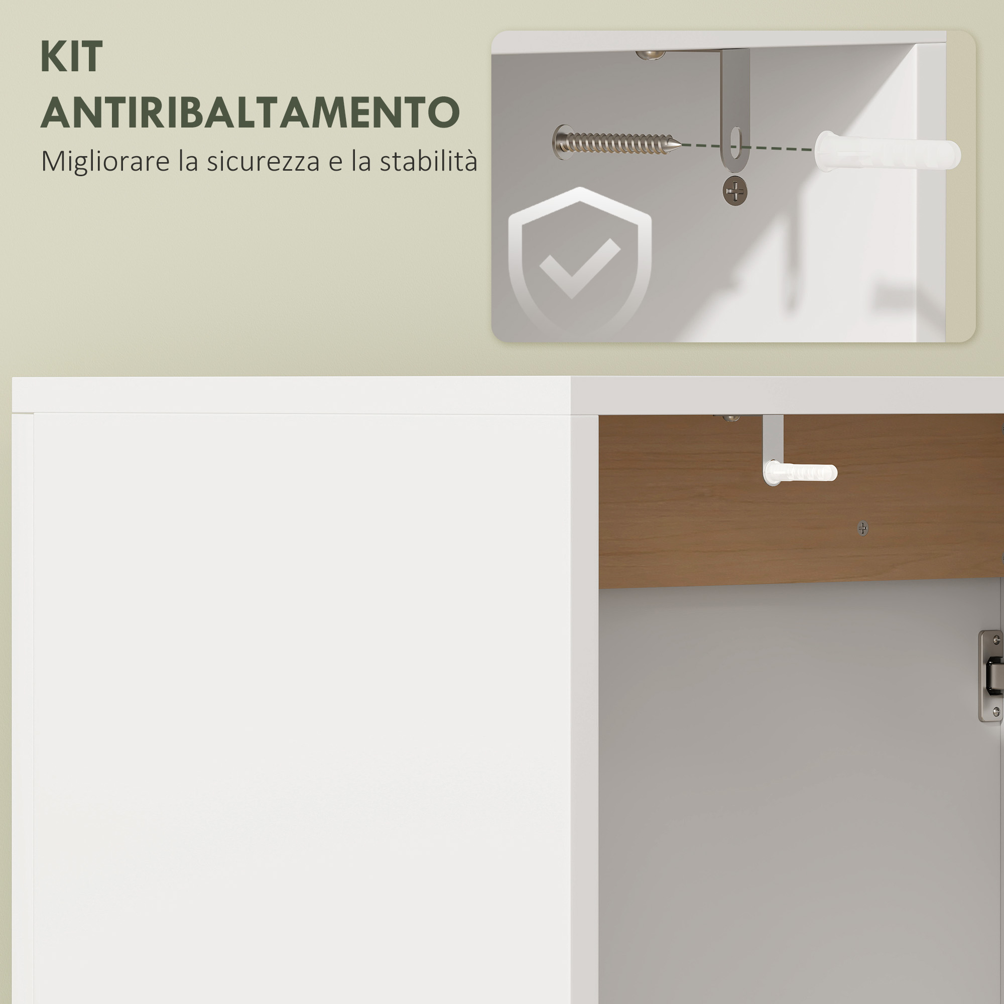 • • Include un kit anti-ribaltamento per il fissaggio alla parete, aumentando la sicurezza