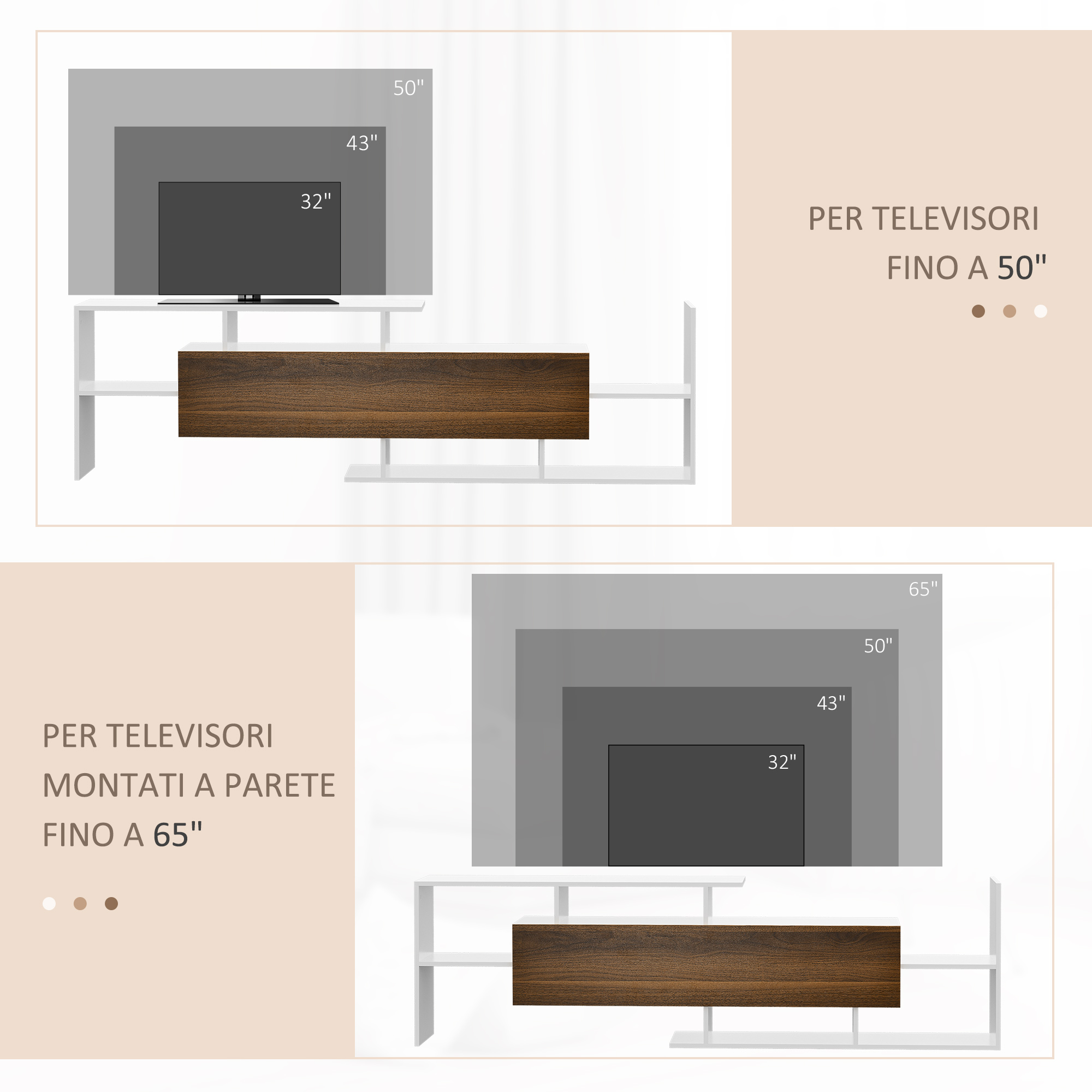 - • Capacità di peso: 60kg (mobile TV), 20kg (mensola a muro)