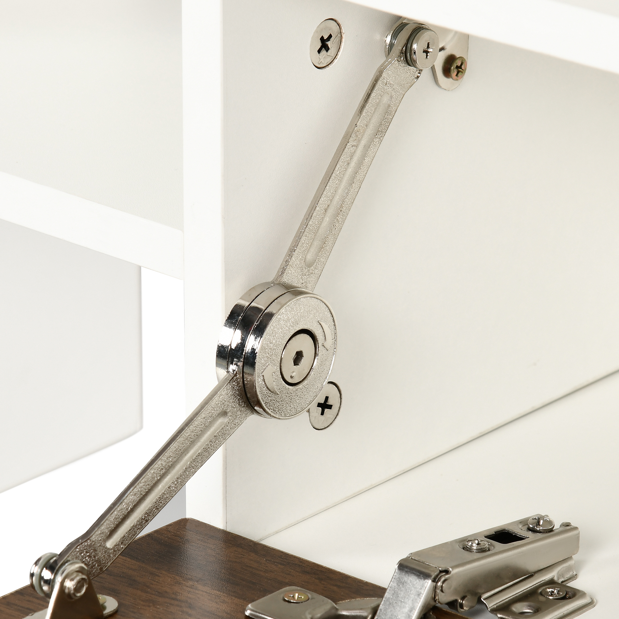 - AMPIO SPAZIO: Il piano d’appoggio e i diversi ripiani aperti offrono molto spazio per esporre le tue decorazioni. L’armadietto con anta a ribalta garantisce la privacy ed elimina il disordine dalla tua vista.