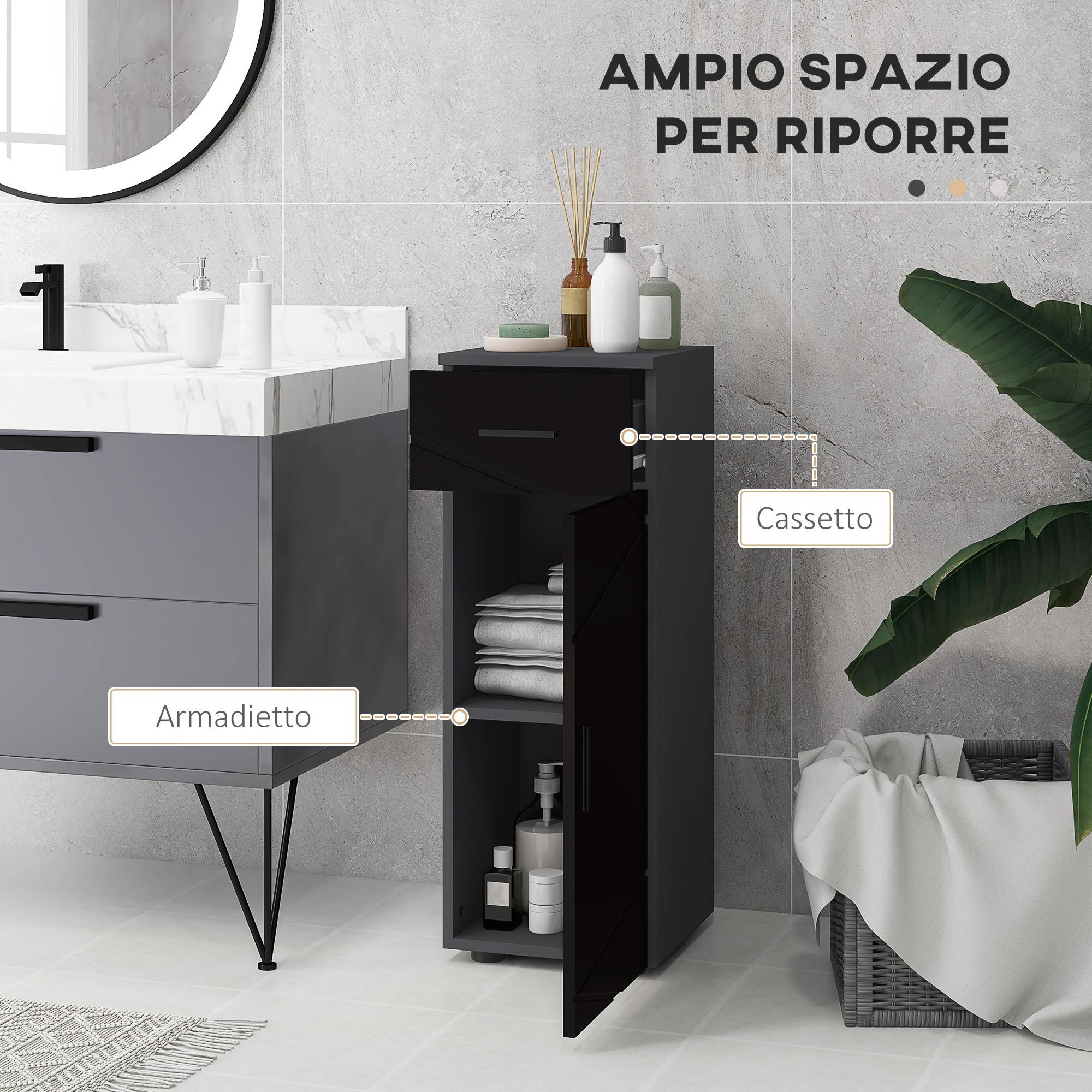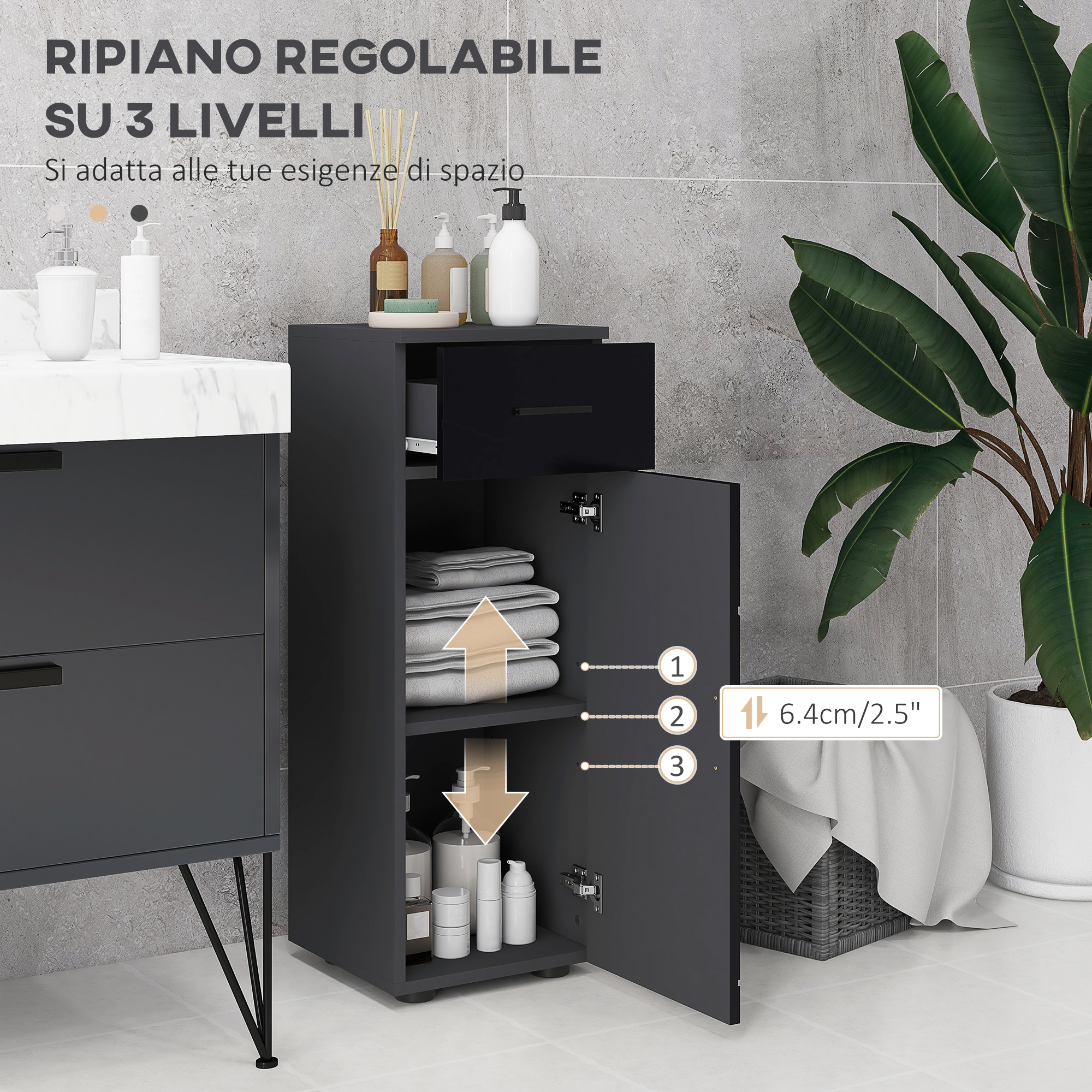 Mobiletto Bagno in Truciolato con Cassetto e Armadietto a 2 Livelli Regolabili, 30x30x82 cm, Nero e Grigio