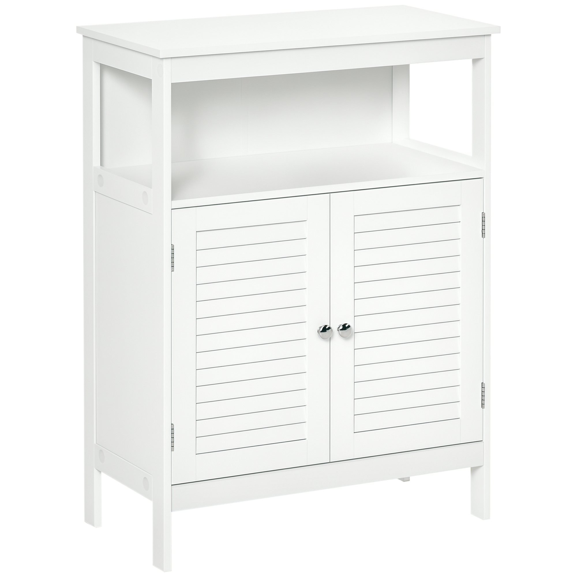 Arreda il tuo bagno con stile, con questo mobiletto per il bagno progettato per te da [ITALFROM HOME DESIGN], Costruito in pannelli MDF rifiniti con vernice bianca, è composto da due ripiani superiori e da un armadietto con antine a persiana, Perfetto per ambienti di piccole dimensioni, ti aiuta a sfruttare lo spazio al massimo e ti offre diverse soluzioni per avere asciugamani, cosmetici, detersivi e prodotti da bagno sempre in ordine,