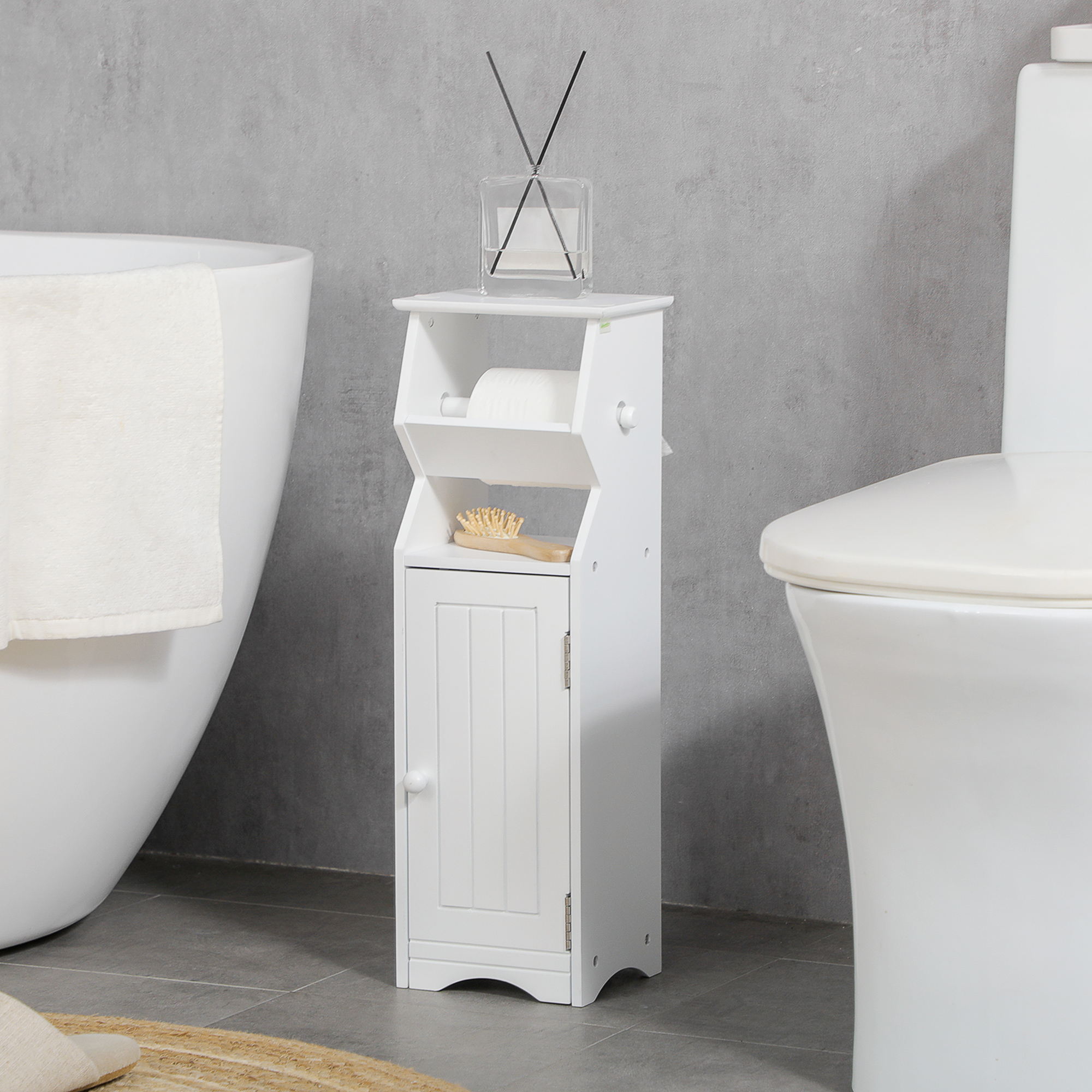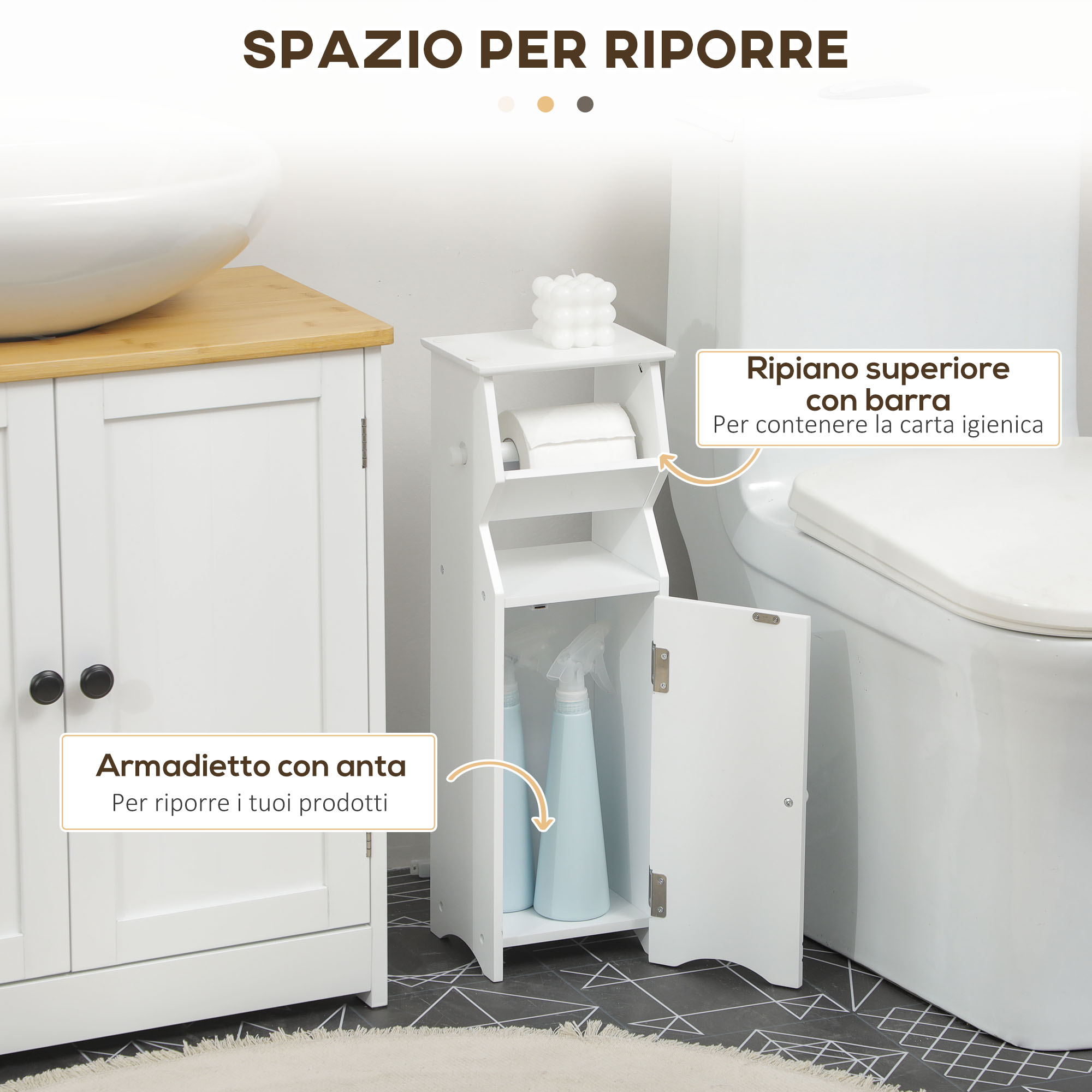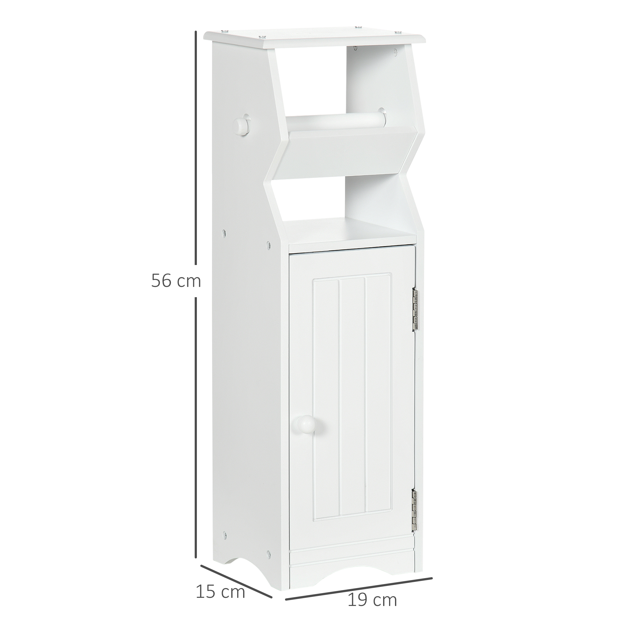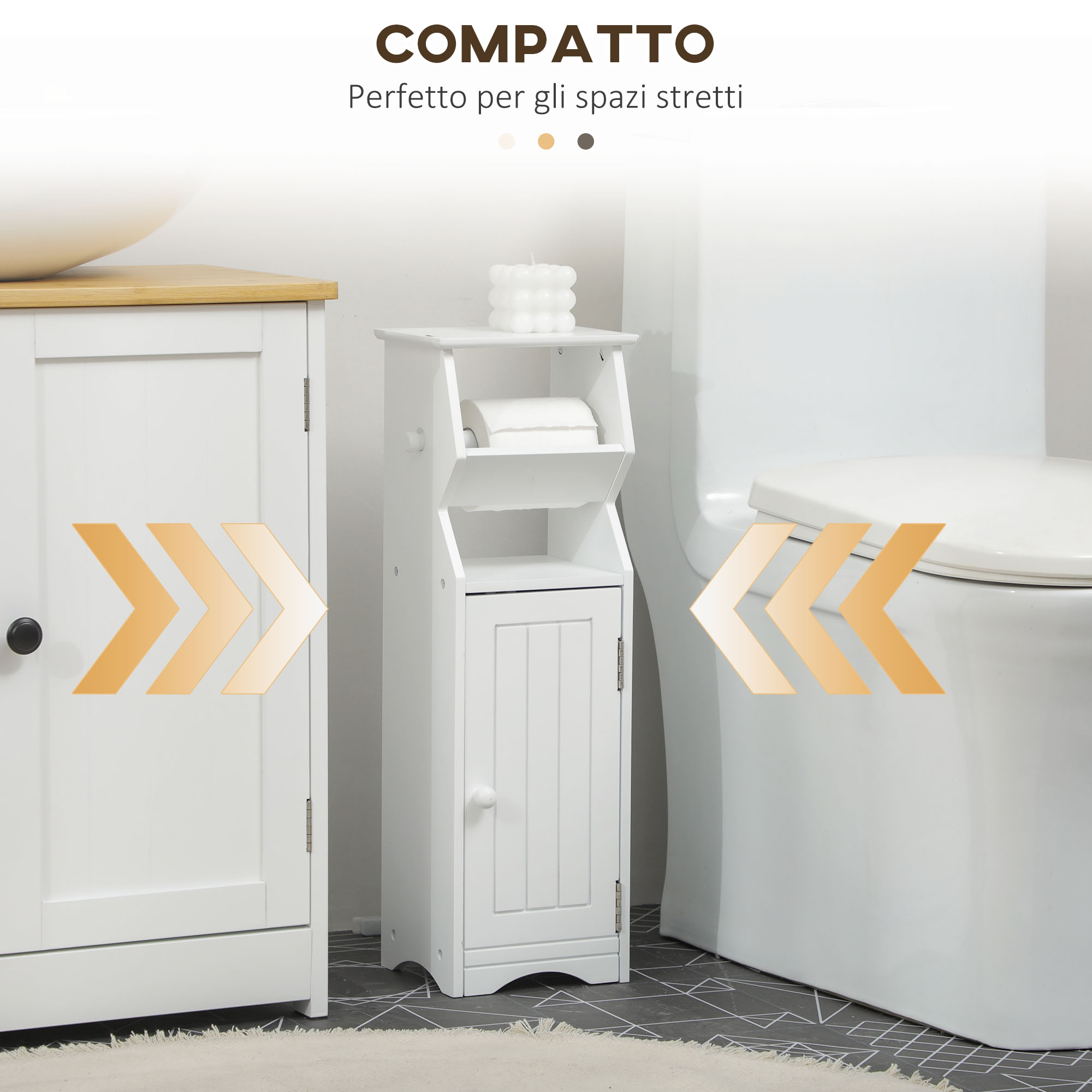 Mobiletto da Bagno in MDF Bianco con Armadietto e Spazio per Carta Igienica, 19x15x56 cm