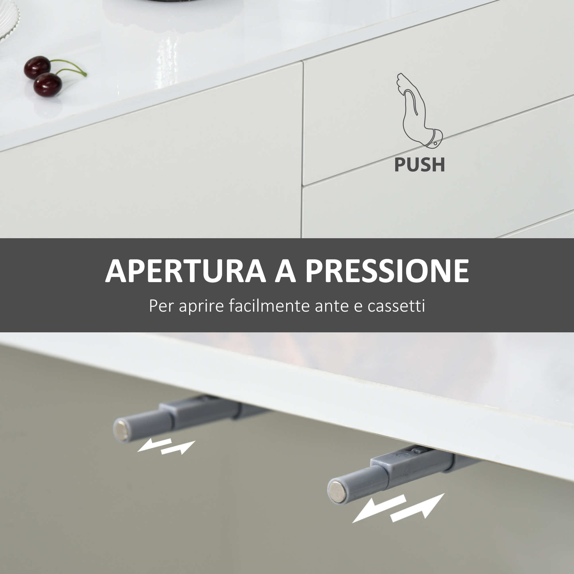 Mobiletto Multiuso in Legno Bianco con 2 Cassetti e 2 Armadietti con Apertura a Pressione, 117x36x74 cm