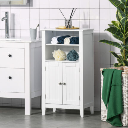 Mobile Bagno con Mensole Regolabili e Armadietto 2 Ante, Mobiletto Bagno Multiuso in Legno, Bianco, 50x30x93cm