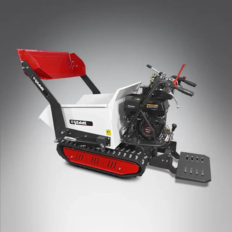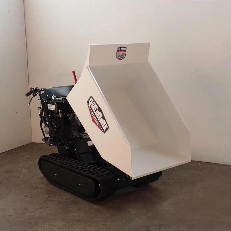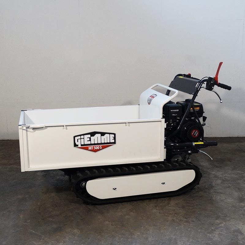 Queste motocarriole cingolate con motore della serie MT-H 500 di Giemme Machinery possono affrontare ogni tipologia di situazione e terreni difficili senza mai fermarsi. Vengono utilizzate con successo nei più svariati settori: in campagna, nei cantieri, sulla neve, in agricoltura, zootecnica, industria, distribuzione e giardinaggio. La trasmissione meccanica con tre marce avanti e una in dietro consente di sfruttare a pieno la potenza dei motori Loncin da 9 hp, mentre il profilo dei cingoli in gomma assicura la trazione in ogni condizione. Tre diversi tipi di cassone, dumper, estensibile o con sponde apribili con una capacità di carico di 500 kg rendono queste motocarriole comode e ideali per ogni esigenza di trasporto. Inoltre le dimensioni molto compatte con una larghezza di soli 720 mm, consentono di attraversare facilmente i passaggi stretti come porte e cancelli.