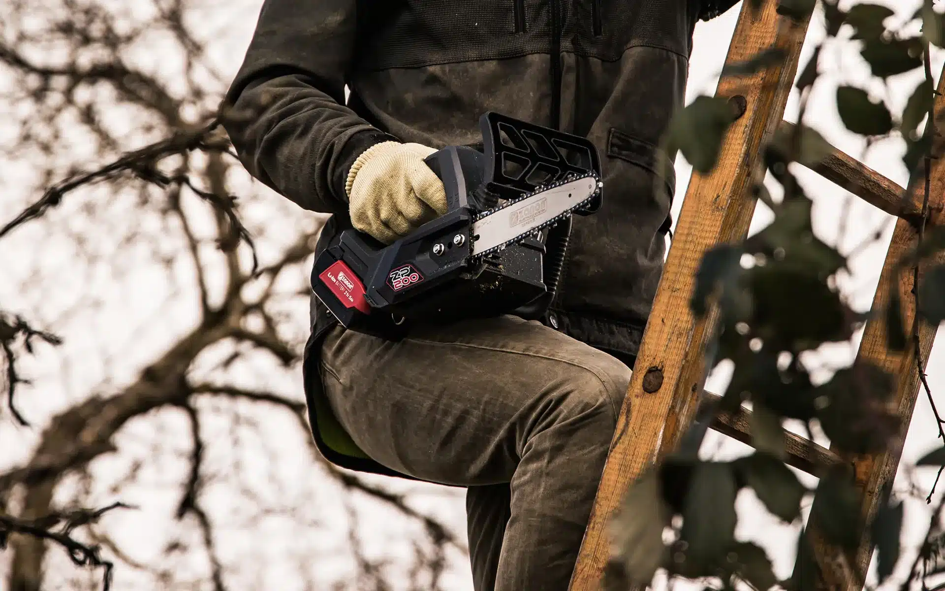 La motosega ZP 200 è super leggera ed ecologica perchè dotata di due batterie plug-in intercambiabili e ricaricabili.