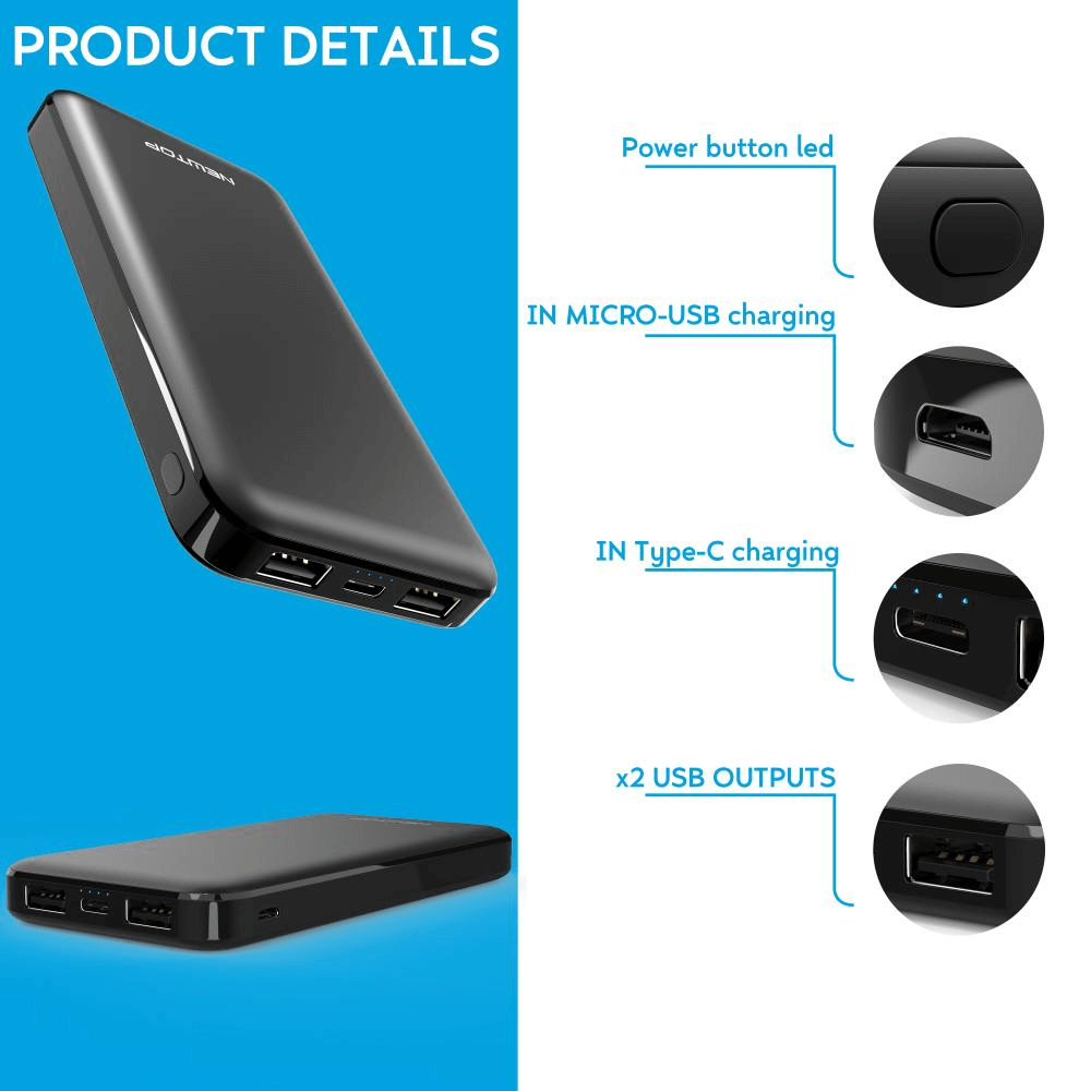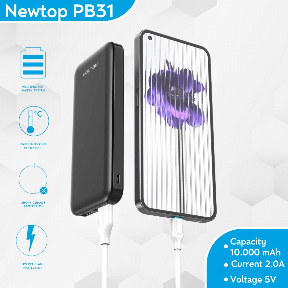 NEWTOP PB30 Power Bank 10000mAh – Ricarica Portatile e Duratura Nero