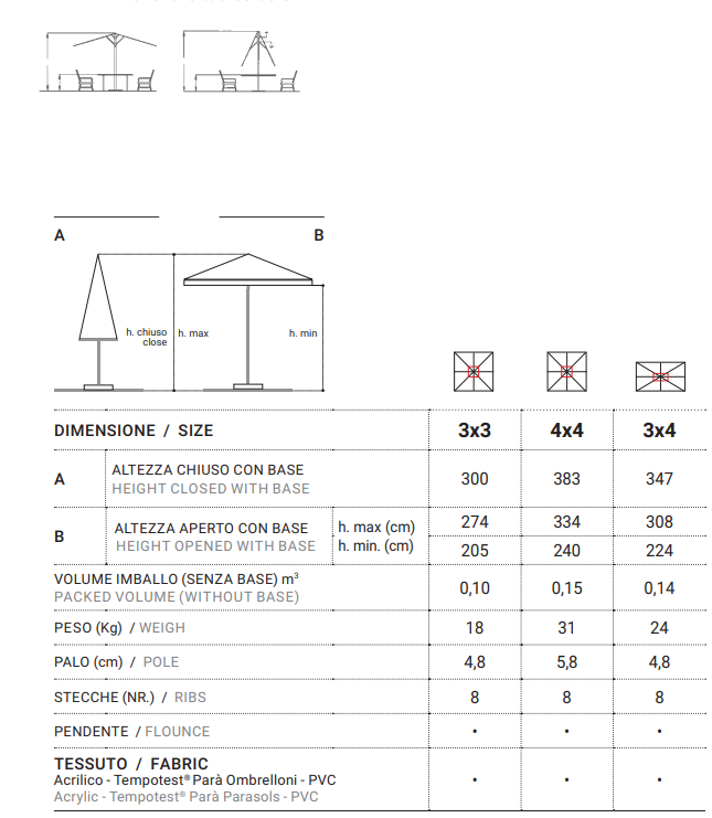 SU RICHIESTA E’ POSSIBILE AVERE IL TESSUTO IN COPERTURA MODELLO TEMPOTEST PARA’ O PVC. CONTATTATECI PER MAGGIORI INFO E PREVENTIVI.