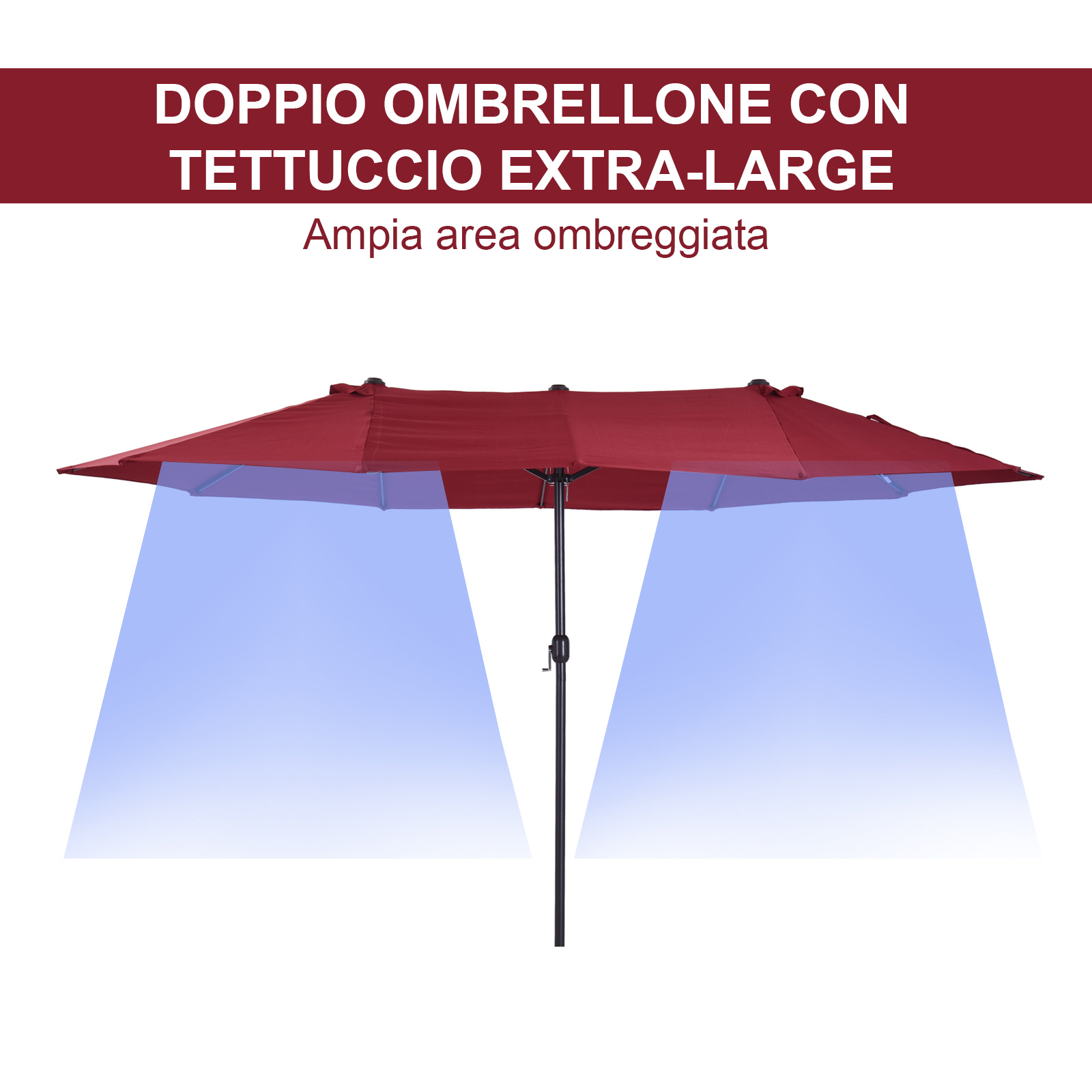 Ombrellone da Giardino Doppio con Apertura a Manovella, in Acciaio e Poliestere, 460x270x240 cm, Rosso