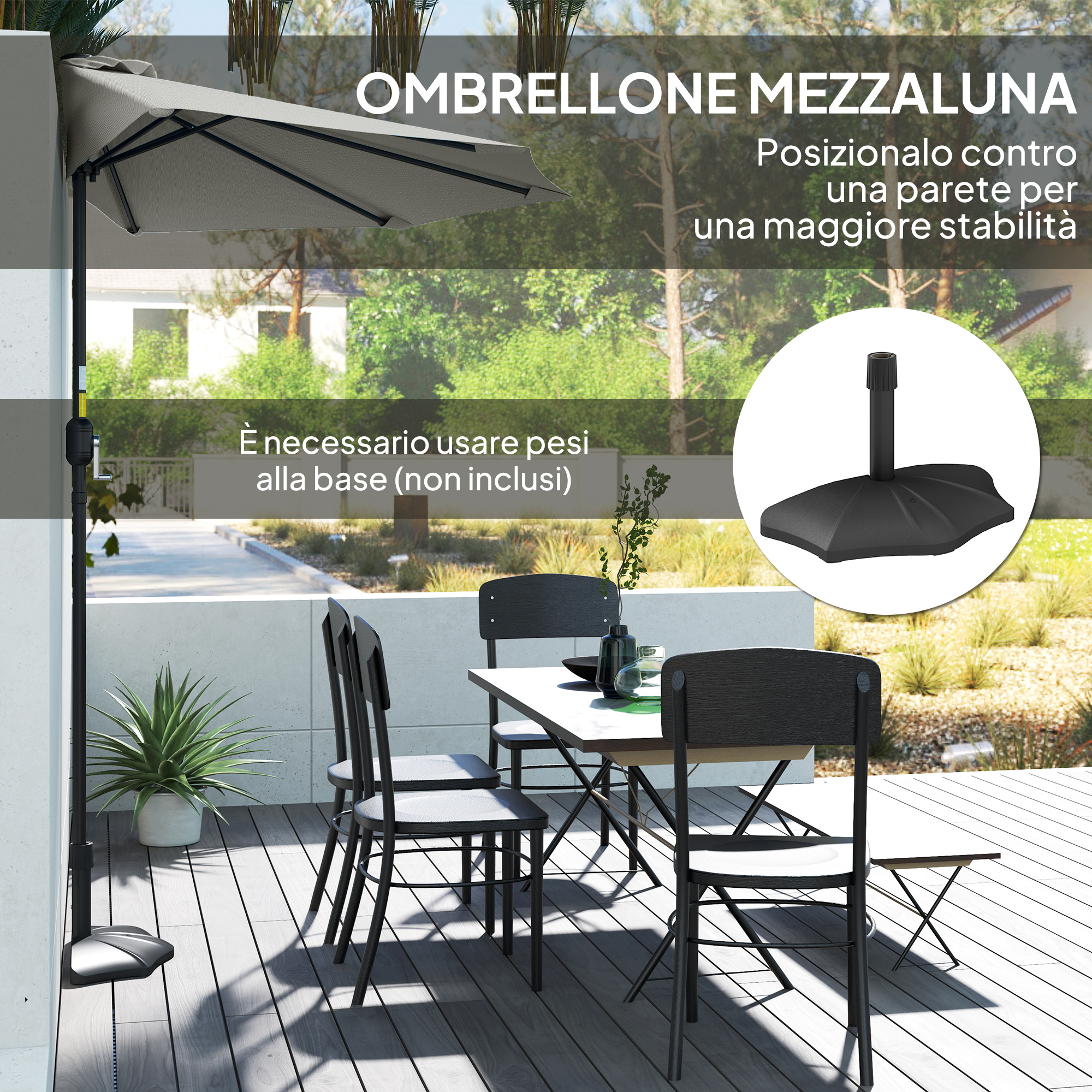 Ombrellone da Parete Mezzaluna Salvaspazio con Apertura a Manovella, 2,7×2,4 m, Grigio Chiaro