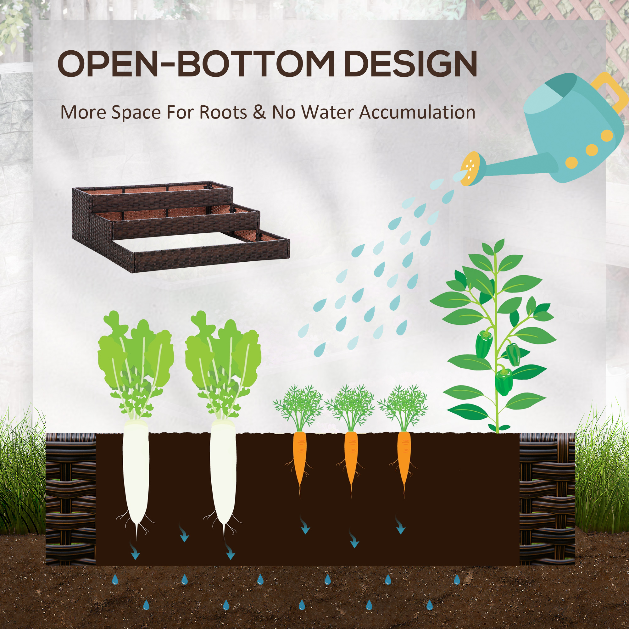 - • Lo stile in rattan rende l’orto rialzato naturale
