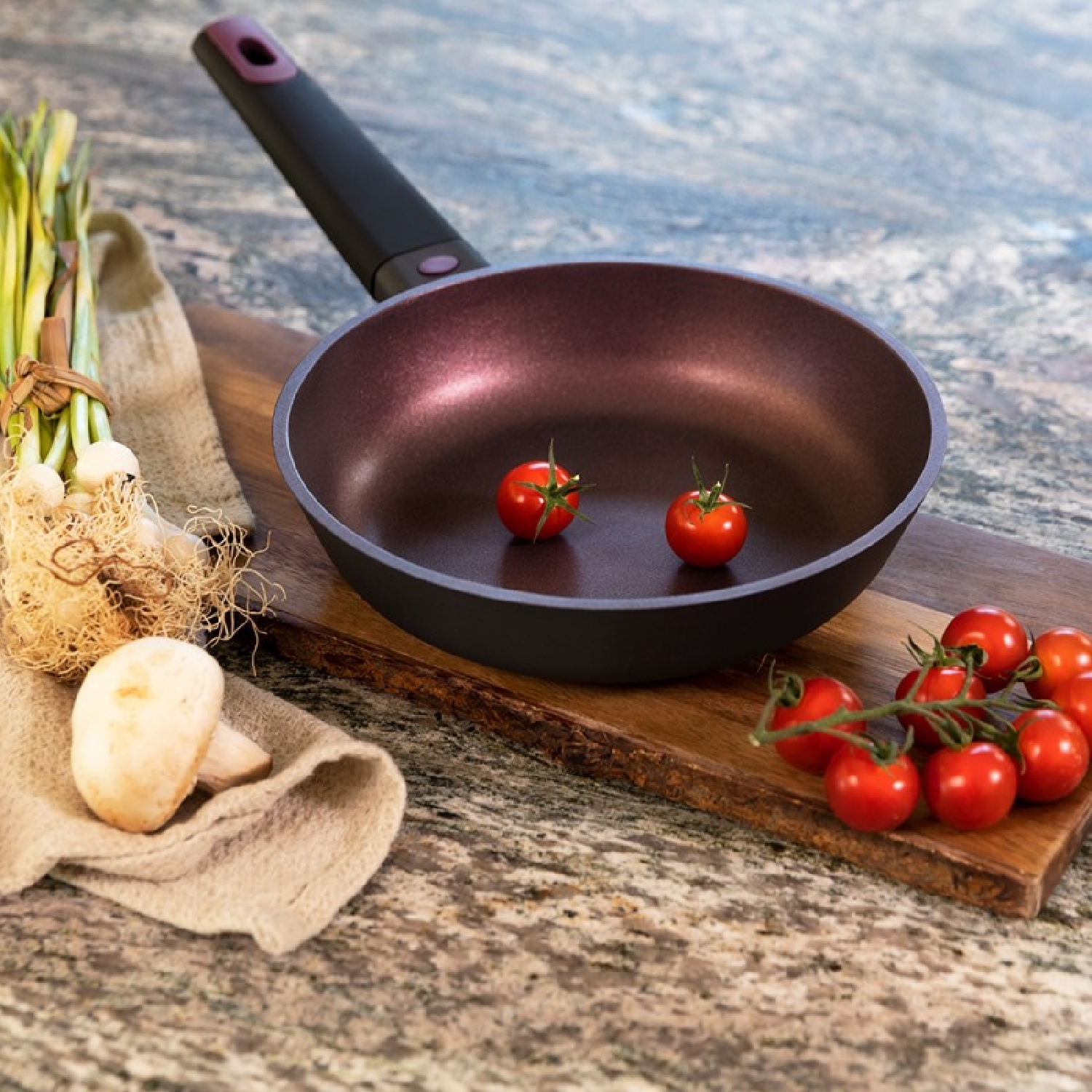 Padella da 20 cm in alluminio fuso di alta qualità con 6 strati e rivestimento antiaderente Select Teflon® senza PFOA, base con diffusore di calore Full Induction, lavabile in lavastoviglie e adatta a tutti i tipi di fornelli, compresi quelli a induzione.