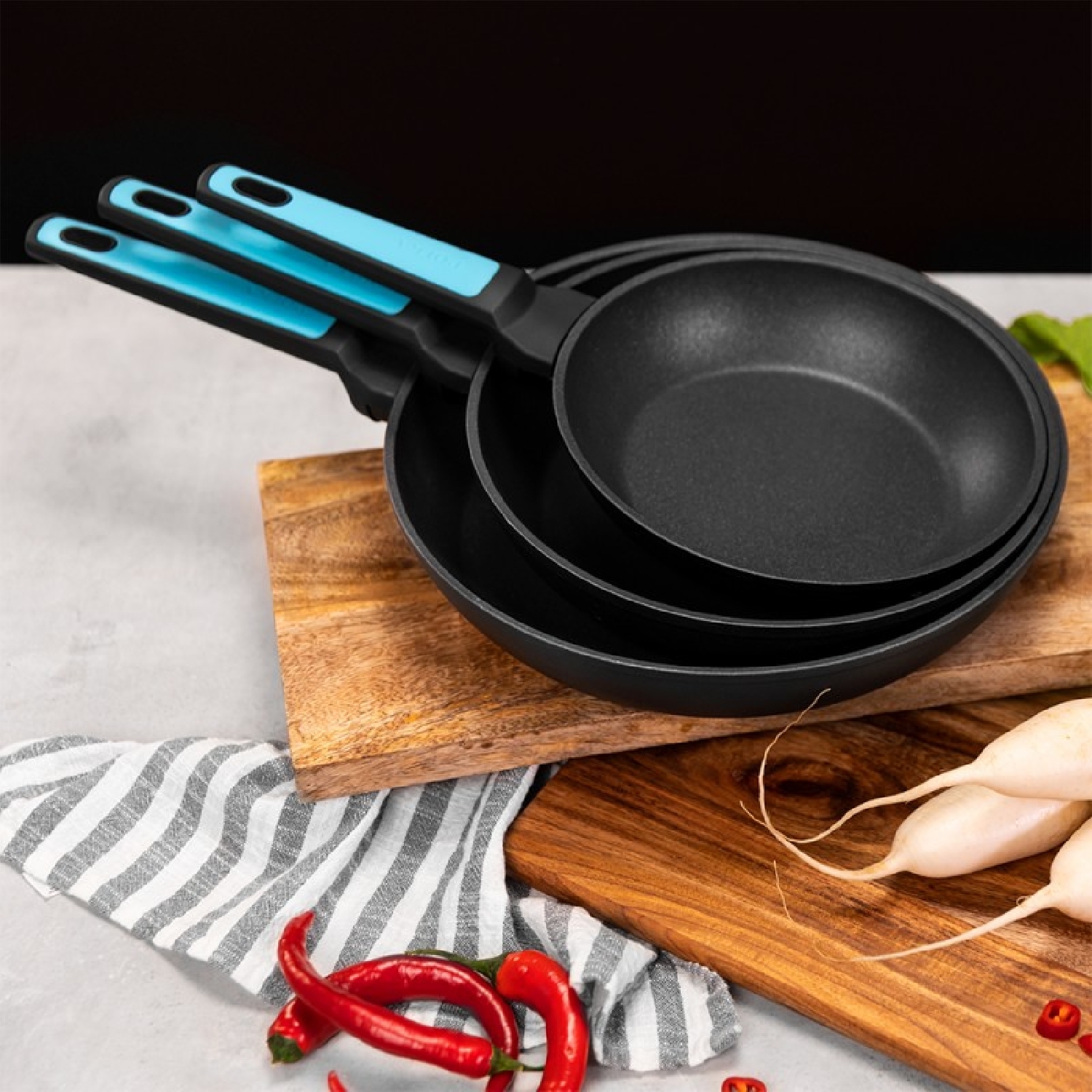 Set di pentole 20-24-28cm in alluminio forgiato di alta qualità, con 6 strati e rivestimento antiaderente Platinum Plus Teflon™ Nonstick Coating, privo di PFOA, con fondo diffusore di calore Full Induction, lavabili lavastoviglie e per tutti i tipi di cucine compresa quella a induzione. Con fondo indeformabile da 5 mm di spessore.