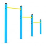 L’attrezzo � costituito da 3 barre orizzontali e 4 montanti in acciaio profilo 80×80 mm, zincato e verniciato a polvere; viti e dadi nascosti da cappucci colorati in plastica.