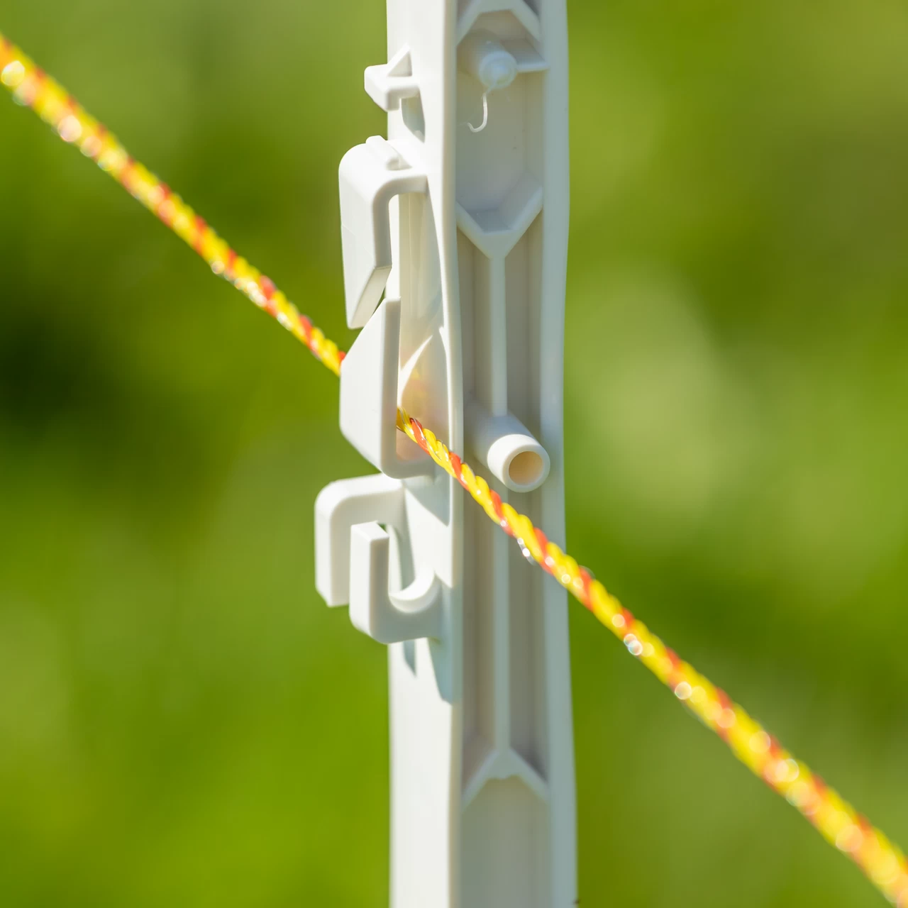 Utilizzando il palo non sono necessari isolatori separati: il palo è fornito a diverse altezze con sedi per il filo e per il nastro di recinzione elettrica.