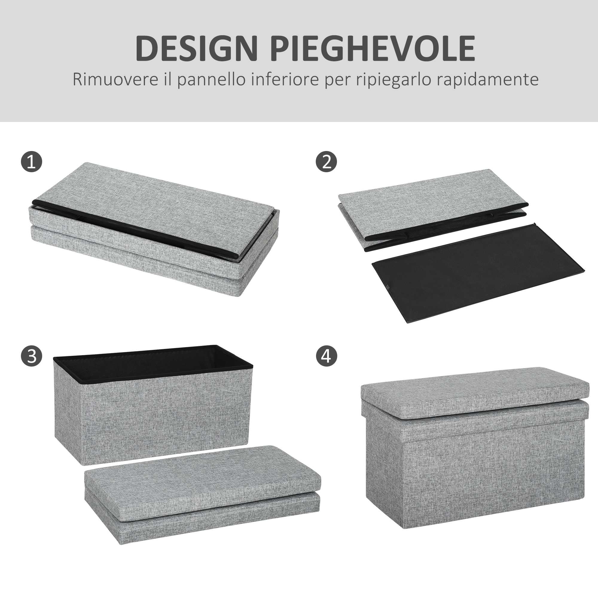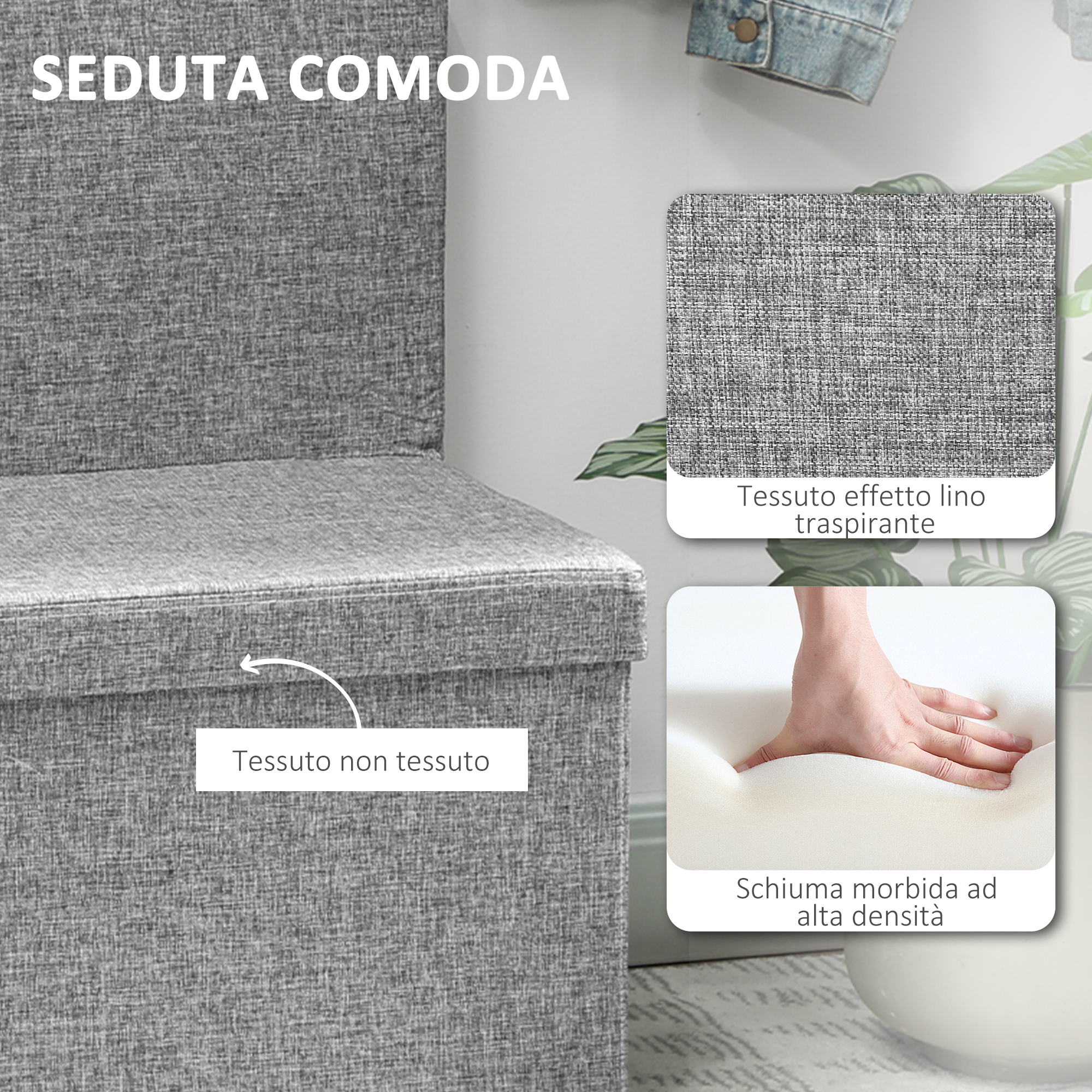 Panca Contenitore Pieghevole con Schienale e Vano da 77L, Rivestimento in Tessuto, 76x50x73 cm, Grigio