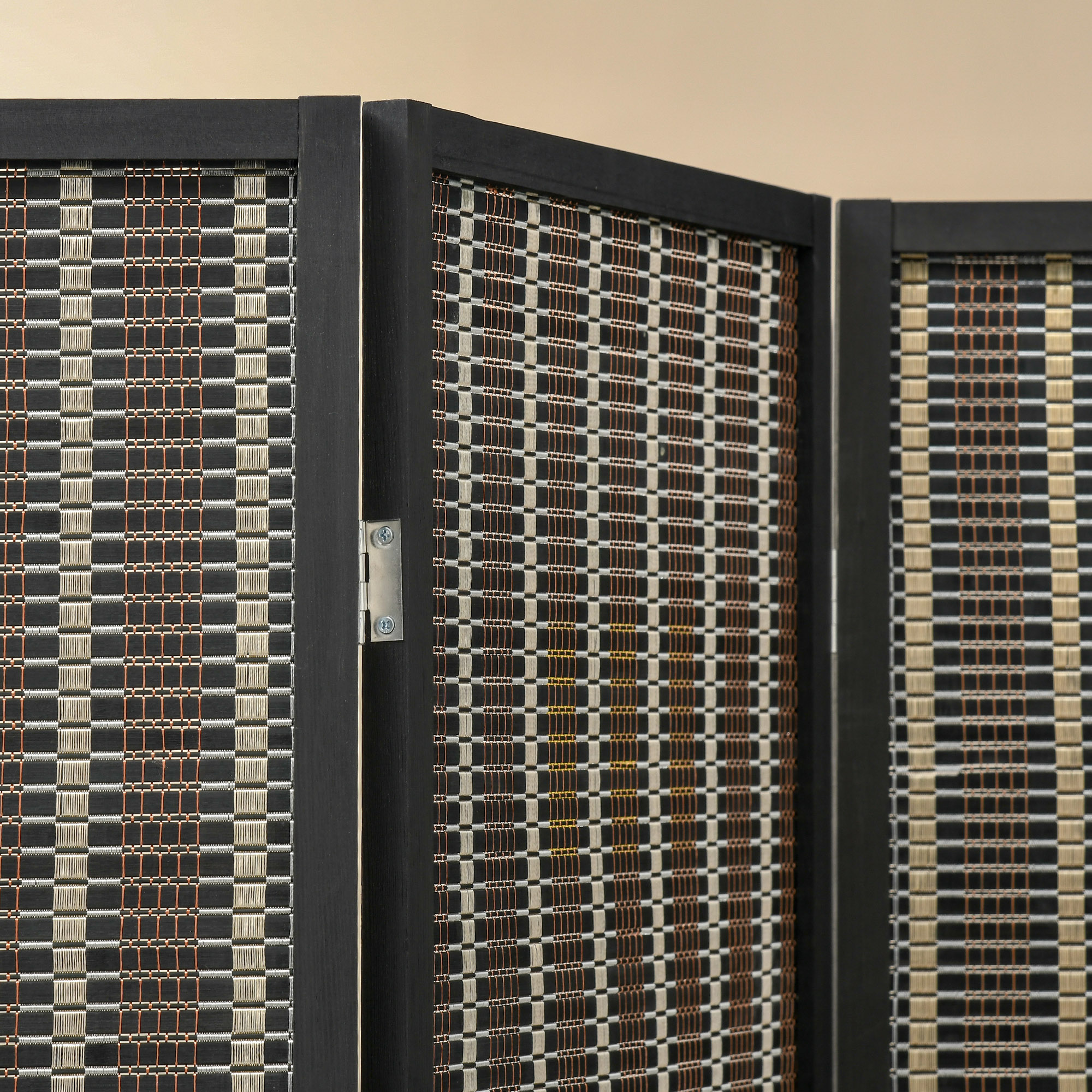 Paravento per Interni, Separé Pieghevole a 4 Pannelli, Divisorio per Ambienti in Legno e Bambù, 180x180x1,9cm, Nero e Marrone