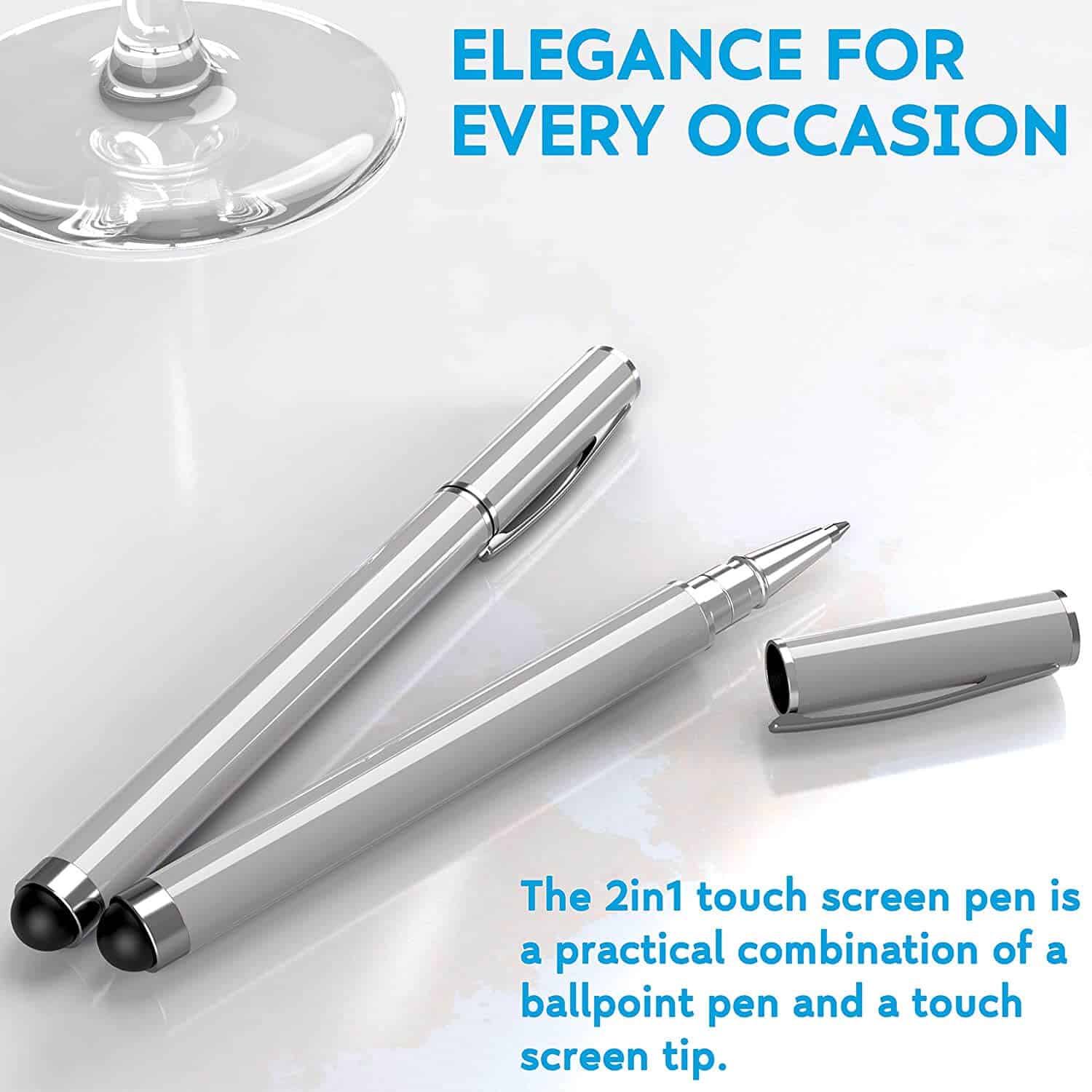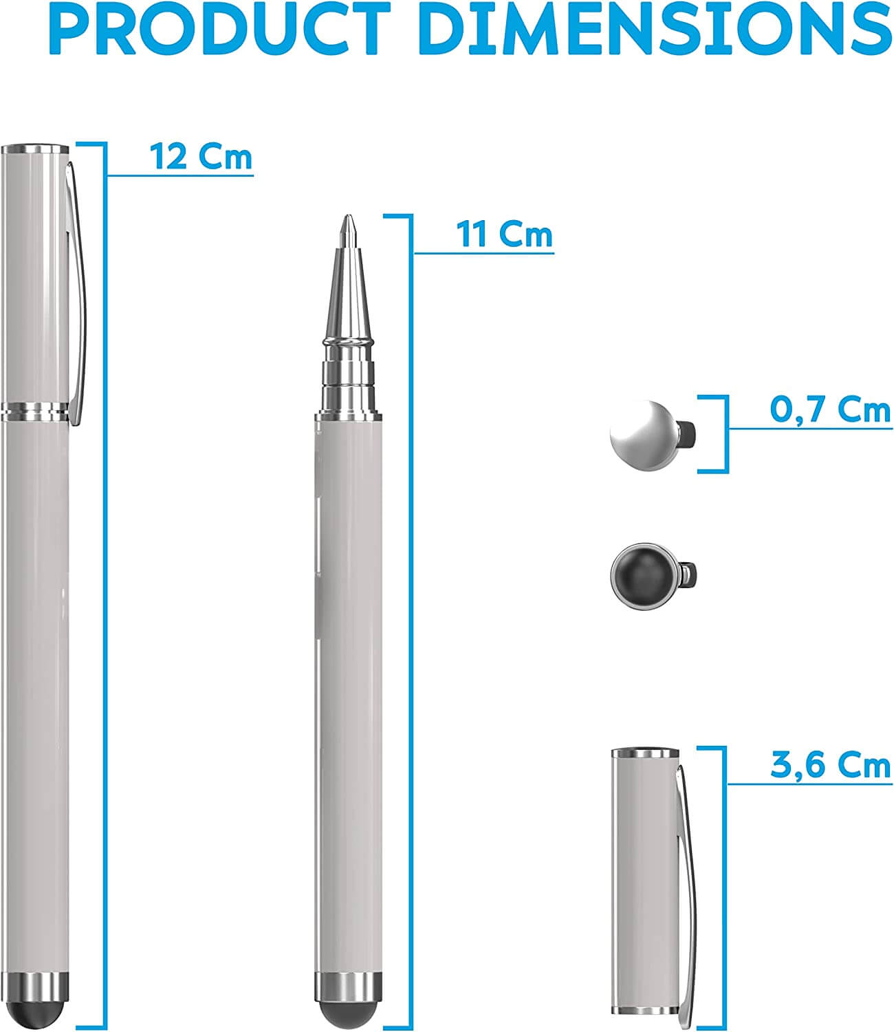 NEWTOP GD09 Penna Touch 2 in 1NEWTOP GD09 Penna TouchLa penna touch screen 2 in 1 Newtop è una pratica combinazione di penna a sfera dotata di pennino capacitivo per schermi touch. Adatta per qualsiasi dispositivo con schermo capacitivo, come tablet e smartphone, offre anche la funzionalità di una classica penna a sfera con inchiostro blu.Caratteristiche principaliPenna 2 in 1: Touch screen + penna a sferaCompatibile con tutti i dispositivi con schermo capacitivoPunta a scomparsa, tratto medio, inchiostro bluSpecifiche tecnicheLa penna touch screen Newtop GD09 è realizzata in metallo di alta qualità, con una punta da 1 mm. L’inchiostro è di colore blu e il pennino capacitivo è altamente sensibile per garantire un utilizzo fluido su tutti i dispositivi touch screen.Vantaggi del prodottoAlta sensibilità: Grazie all’utilizzo di una gomma morbida di alta qualità, il pennino capacitivo offre una sensibilità elevata, reattiva come il tocco delle dita, mantenendo il tuo schermo pulito da impronte digitali, graffi e sporco.Design ergonomico: La struttura in alluminio di alta qualità, con un eccellente processo di lavorazione, rende la penna resistente e di lunga durata. Inoltre, l’inchiostro è sostituibile, garantendo un utilizzo prolungato nel tempo.Domande Frequenti (FAQ)È compatibile con tutti i dispositivi touch? Sì, è compatibile con qualsiasi dispositivo dotato di schermo capacitivo, come smartphone e tablet.L’inchiostro è sostituibile? Sì, l’inchiostro della penna a sfera è sostituibile.