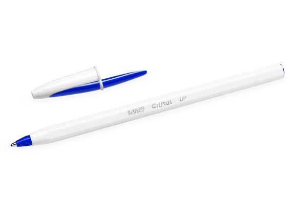 Cristal dal fusto bianco lucido con clip, tappino e punta del colore dell’inchiostro. Punta da 1,2 mm per una larghezza di tratto da 0,35 mm. Inchiostro Easy Glide per una scrittura ultra scorrevole. Colore Blu. Confezione da 20 pezzi