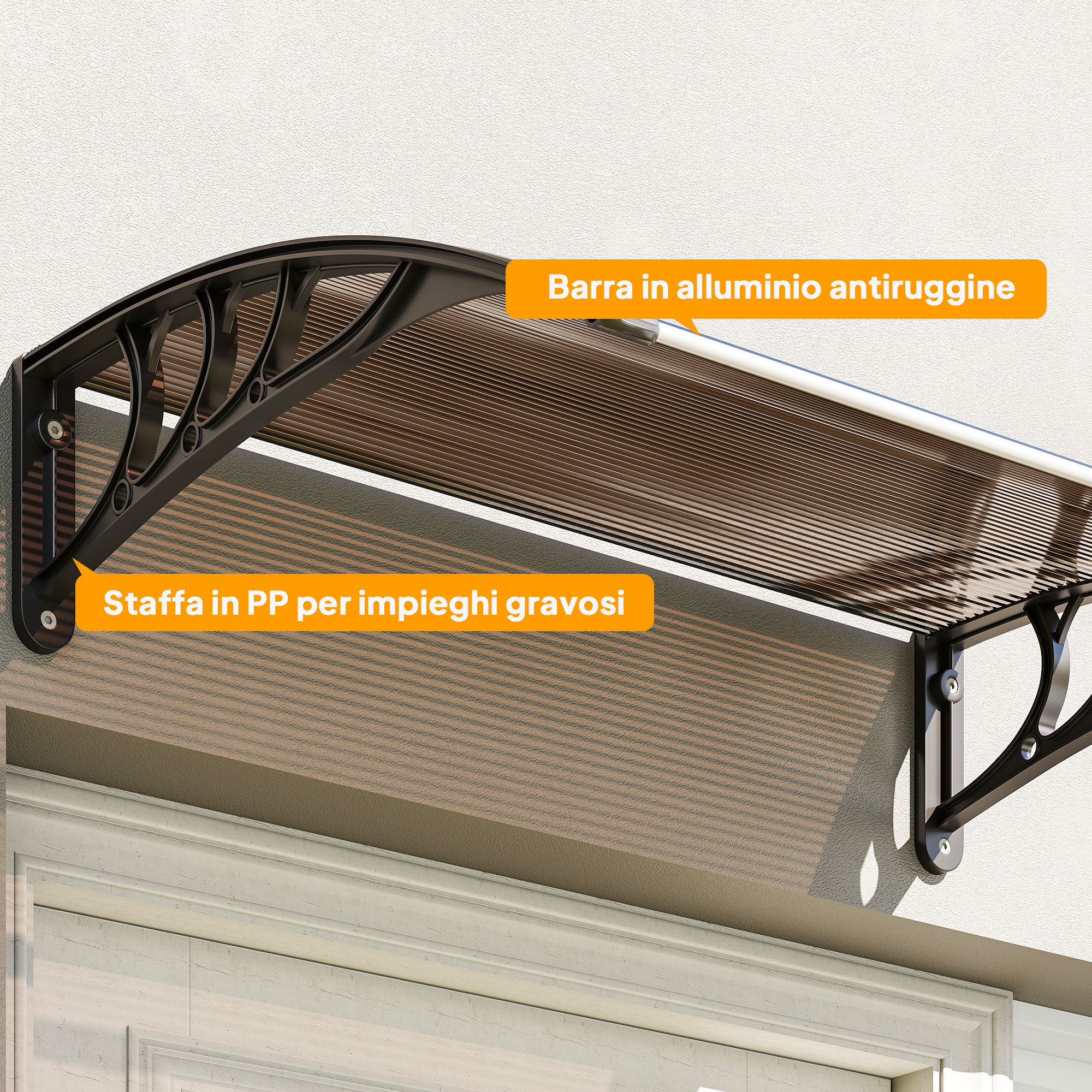 Pensilina da Esterni Impermeabile e Anti-UV, in PC, PP e Alluminio, 75x1x23 cm, Marrone e Nero