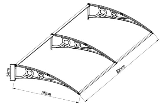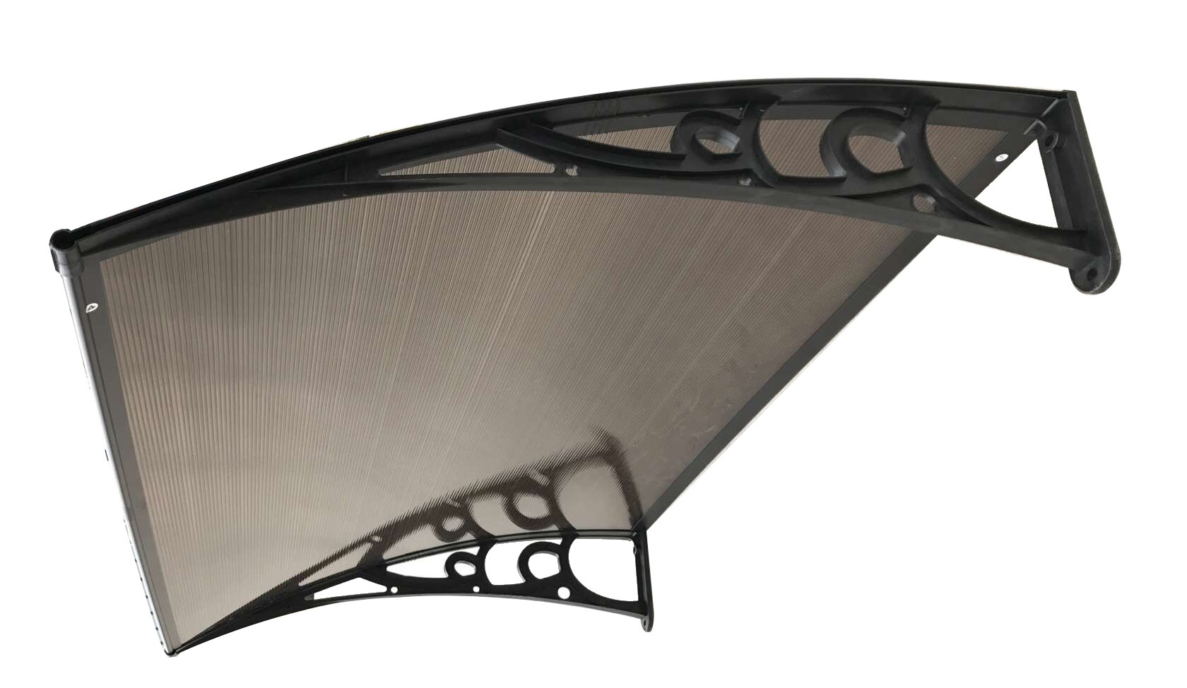 Pensilina L 200×100 cm in policarbonato alveolare spessore 5,2 mm, staffe nere in ABS altezza 24cm. Le pensiline sono accoppiabili tra di loro per creare lunghi tratti di copertura. Ideale per portoncini d’ingresso e finestre.