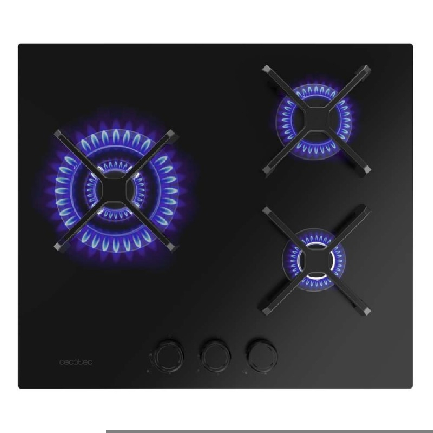 Cecotec Bolero Squad G 3400S Nano Glass – Piano cottura a gas a 3 fuochi, 6,2kW, Nano Glass, griglie in ghisa, bruciatore WOK a tripla corona, accensione elettronica, valvola di sicurezza, accessorio per la conversione del gas incluso.