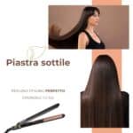 Ceramic Plate Digiquest Piastra Sottile per CapelliLa Digiquest Ceramic Plate è una piastra sottile per capelli con rivestimento in ceramica, progettata per garantire uno styling facile e preciso. Con una temperatura fissa a 200°C e un design compatto, è l’accessorio perfetto per lisciare i capelli anche durante i tuoi viaggi.Caratteristiche PrincipaliRivestimento in ceramica: piastre da 25×90 mm per una distribuzione uniforme del calore e protezione dei capelli.Temperatura fissa: 200°C, ideale per risultati rapidi e professionali.Design pratico: maniglia bloccabile e dimensioni compatte (26×3 cm), perfette per viaggi.Cavo girevole a 360°: per maggiore libertà di movimento.Occhiello per aggancio: per riporre la piastra in modo semplice e sicuro.Specifiche TecnichePotenza: 35WCavo: lunghezza 1,8 m con spina VDEAlimentazione: 220-240V ~ 50-60HzDimensioni: 26×3 cmIdeale per ViaggiGrazie al suo design leggero e compatto, la piastra Digiquest è perfetta per chi cerca un dispositivo pratico da portare ovunque. È facile da usare, occupa poco spazio e garantisce risultati professionali anche lontano da casa.Domande Frequenti (FAQ)Posso usarla su capelli bagnati? No, è consigliabile utilizzarla solo su capelli completamente asciutti.È adatta a tutti i tipi di capelli? Sì, è ideale per capelli normali e sottili, grazie alla temperatura fissa di 200°C.